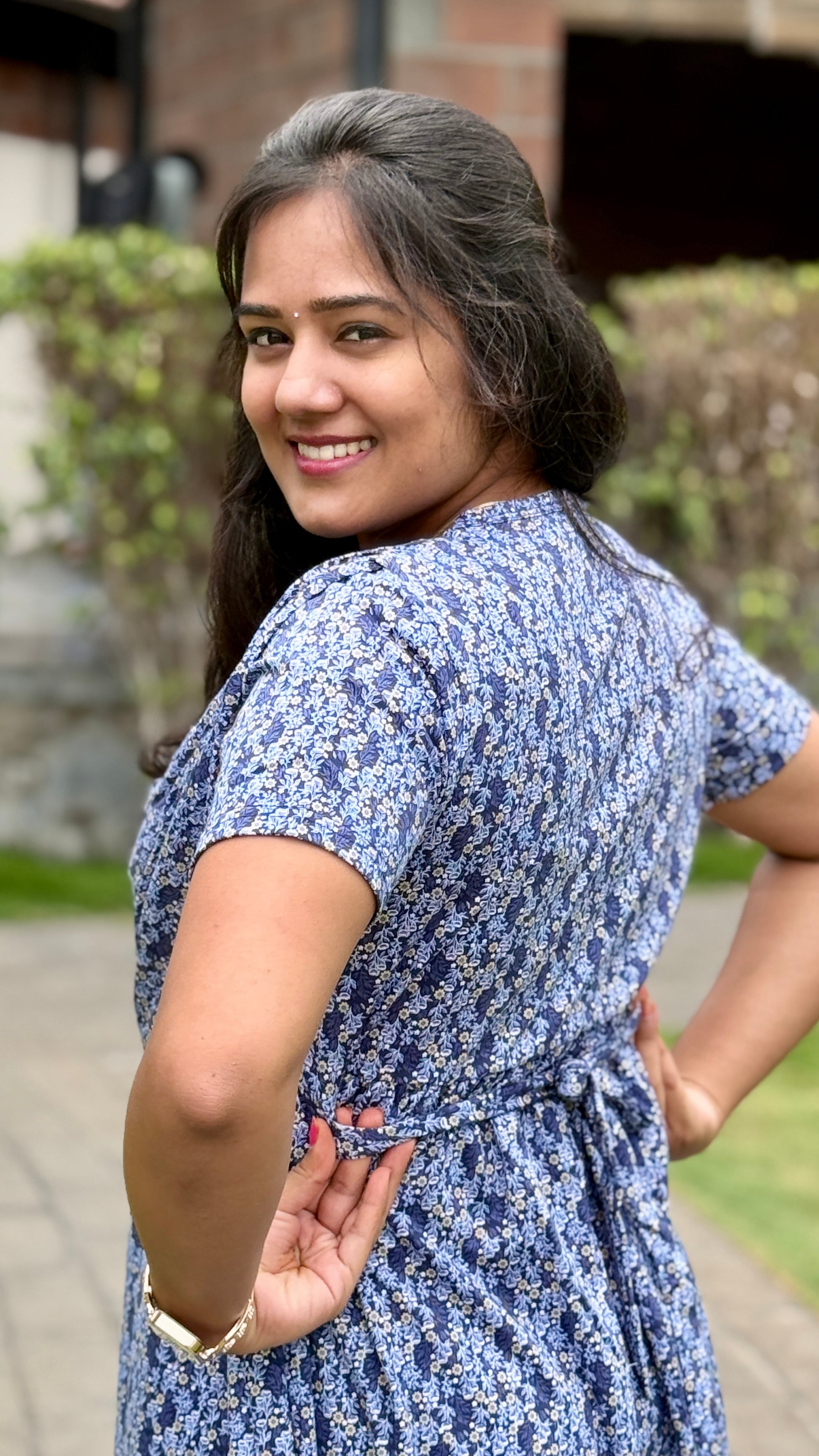 ATTACHED SHAWL NON FEEDING WITH FLORAL NAVY