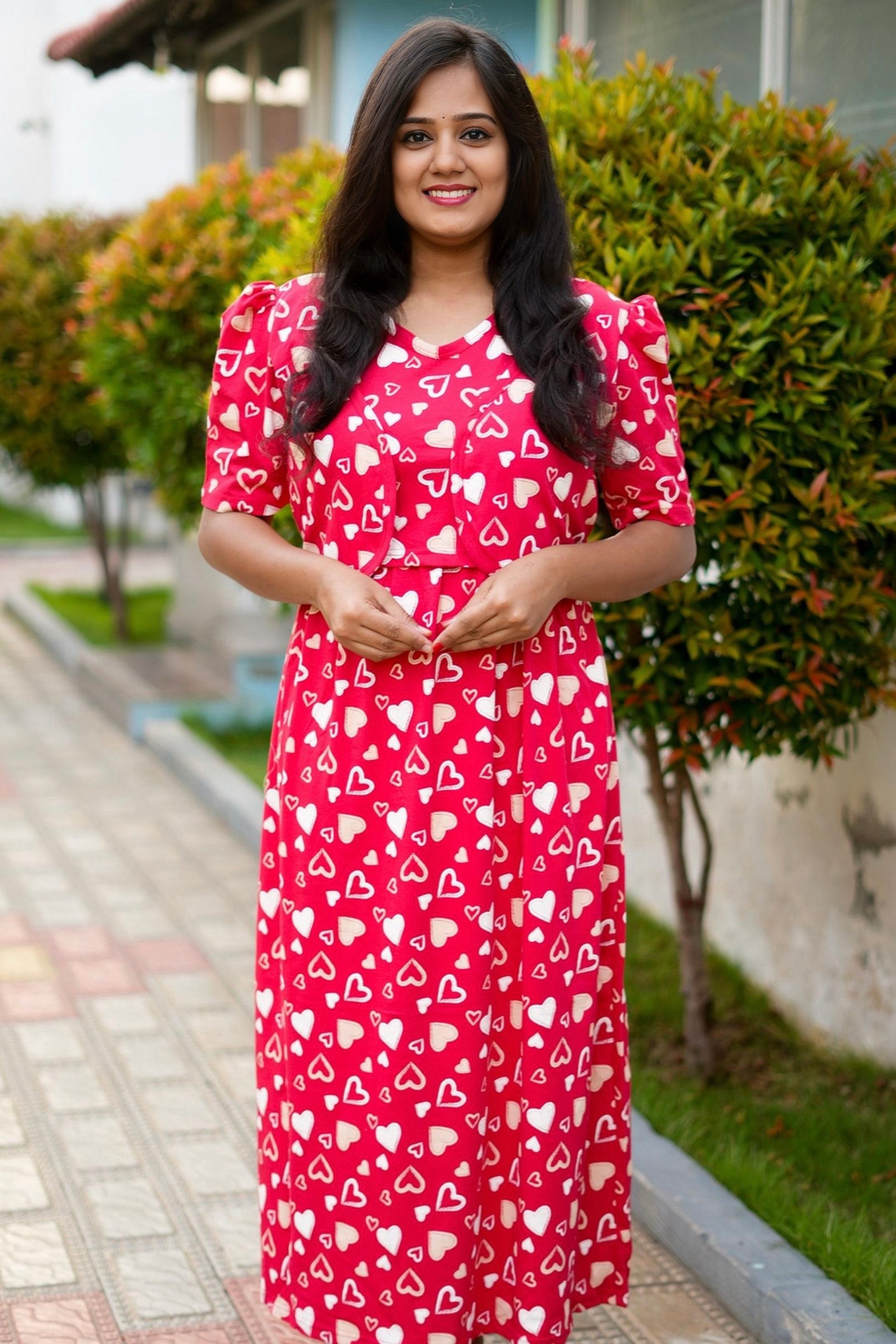 “Style outside, comfort inside — the perfect feeding-friendly maternity dress with an attached coat!”