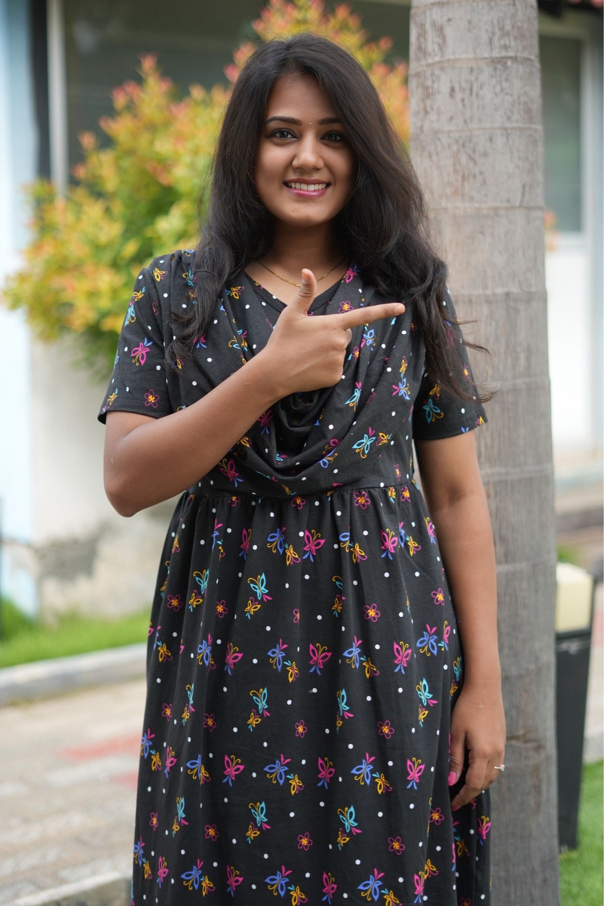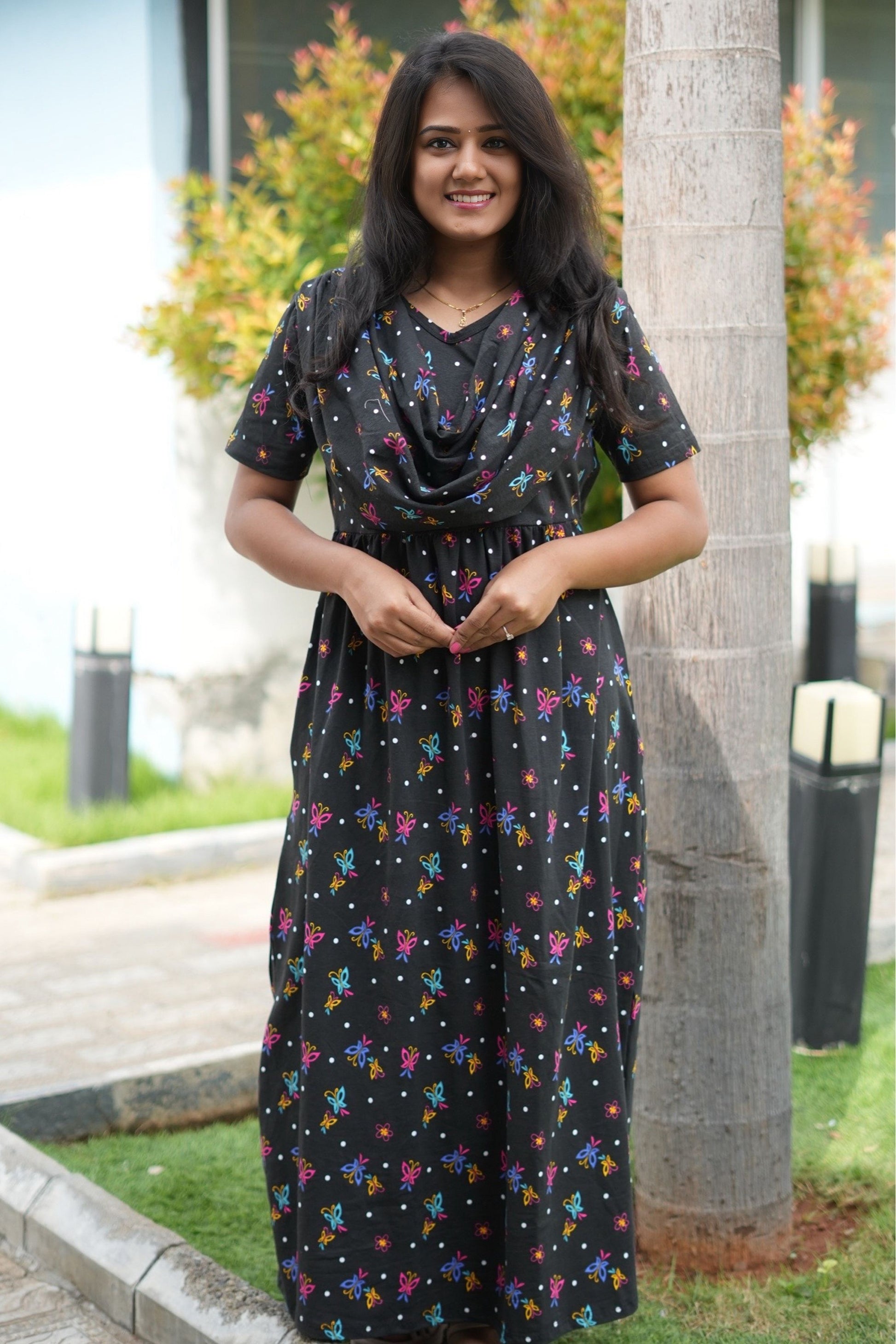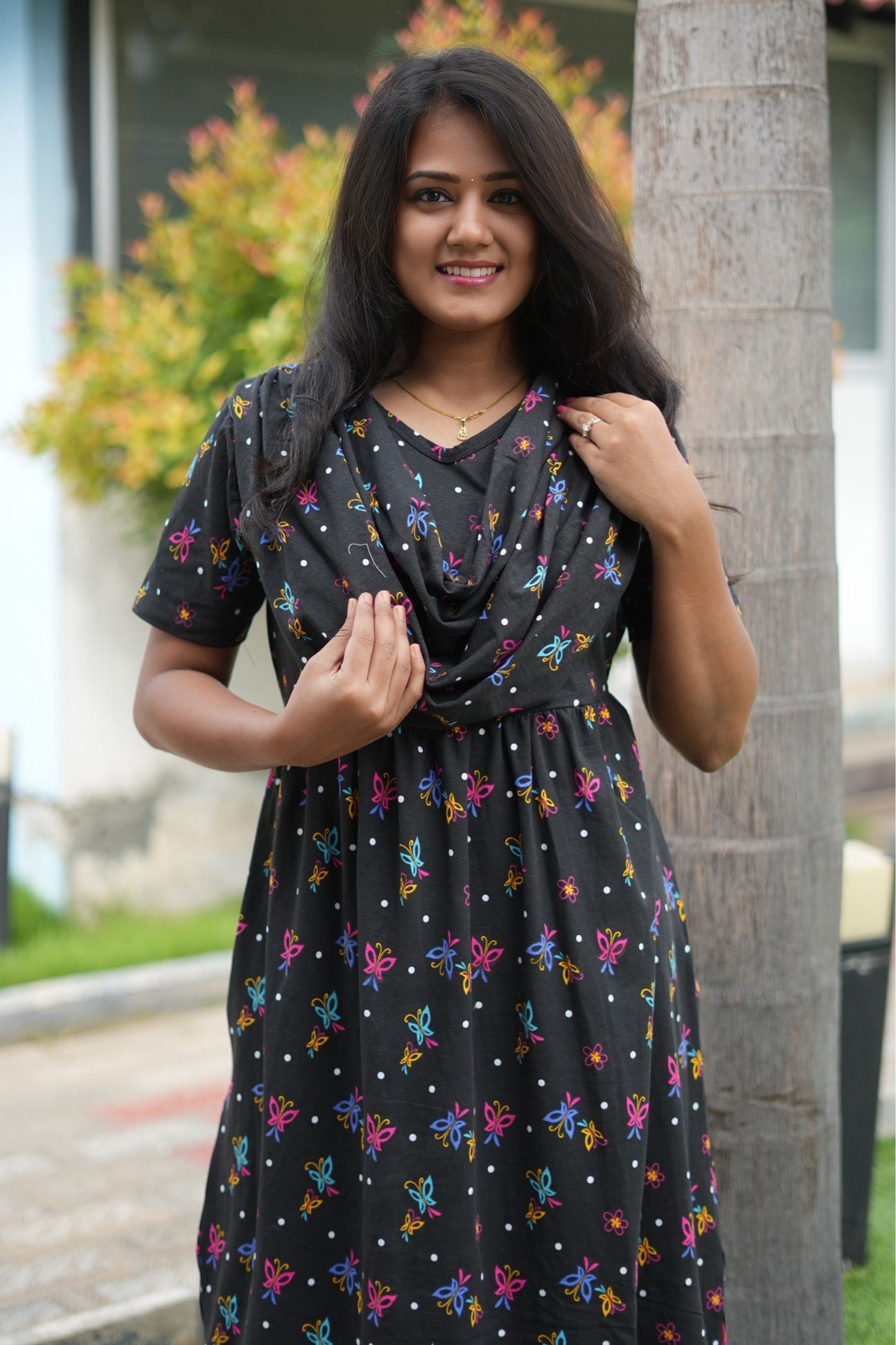 Advantages : Introducing the NON MATERNITY SHAWL - the perfect alternative for stylish maxi wear. With an attached shawl, this nighty offers both comfort and fashion, making it a versatile addition to your wardrobe. Say goodbye to traditional nighties and hello to a chic and practical option.