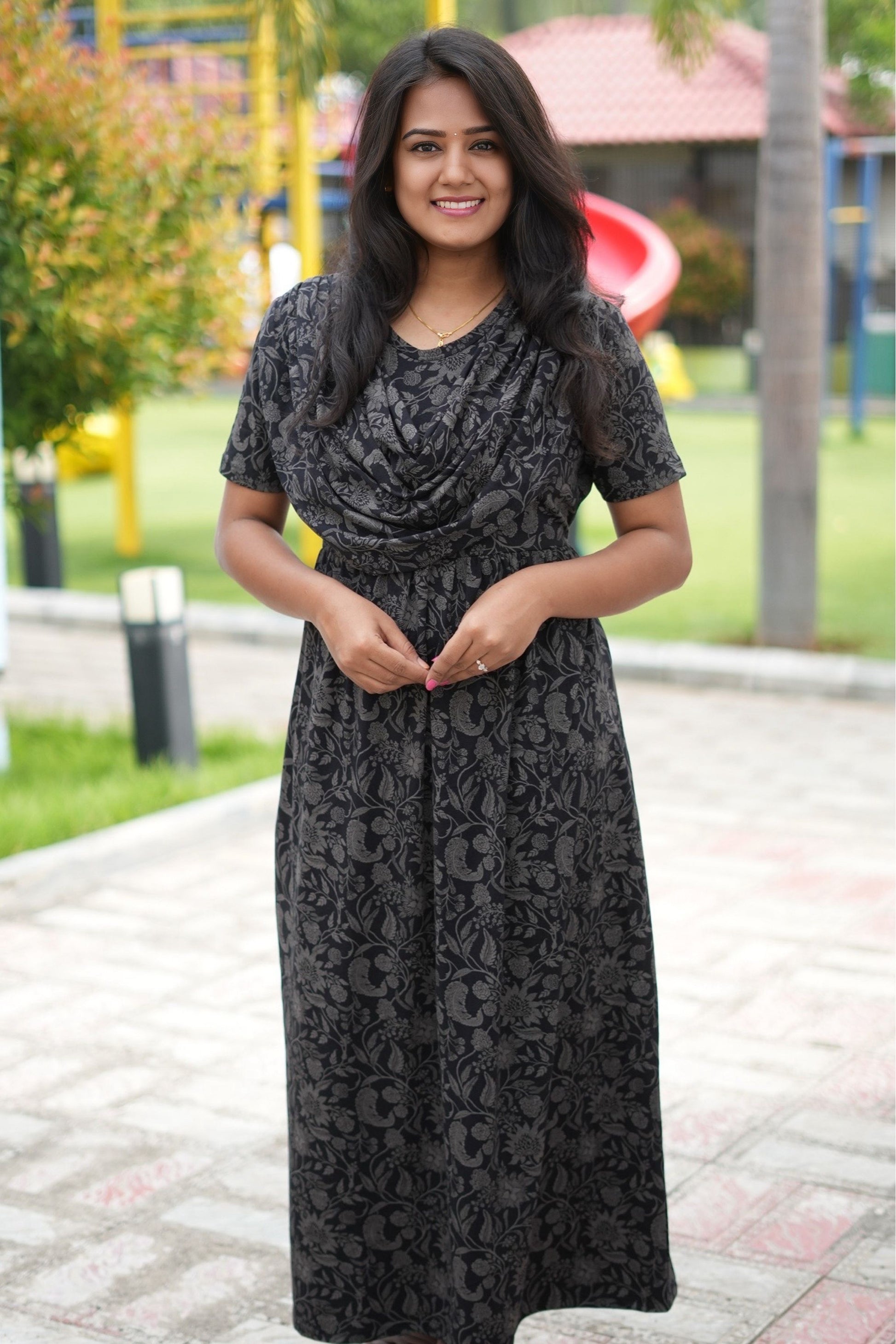 Advantages : Introducing the NON MATERNITY SHAWL - the perfect alternative for stylish maxi wear. With an attached shawl, this nighty offers both comfort and fashion, making it a versatile addition to your wardrobe. Say goodbye to traditional nighties and hello to a chic and practical option.