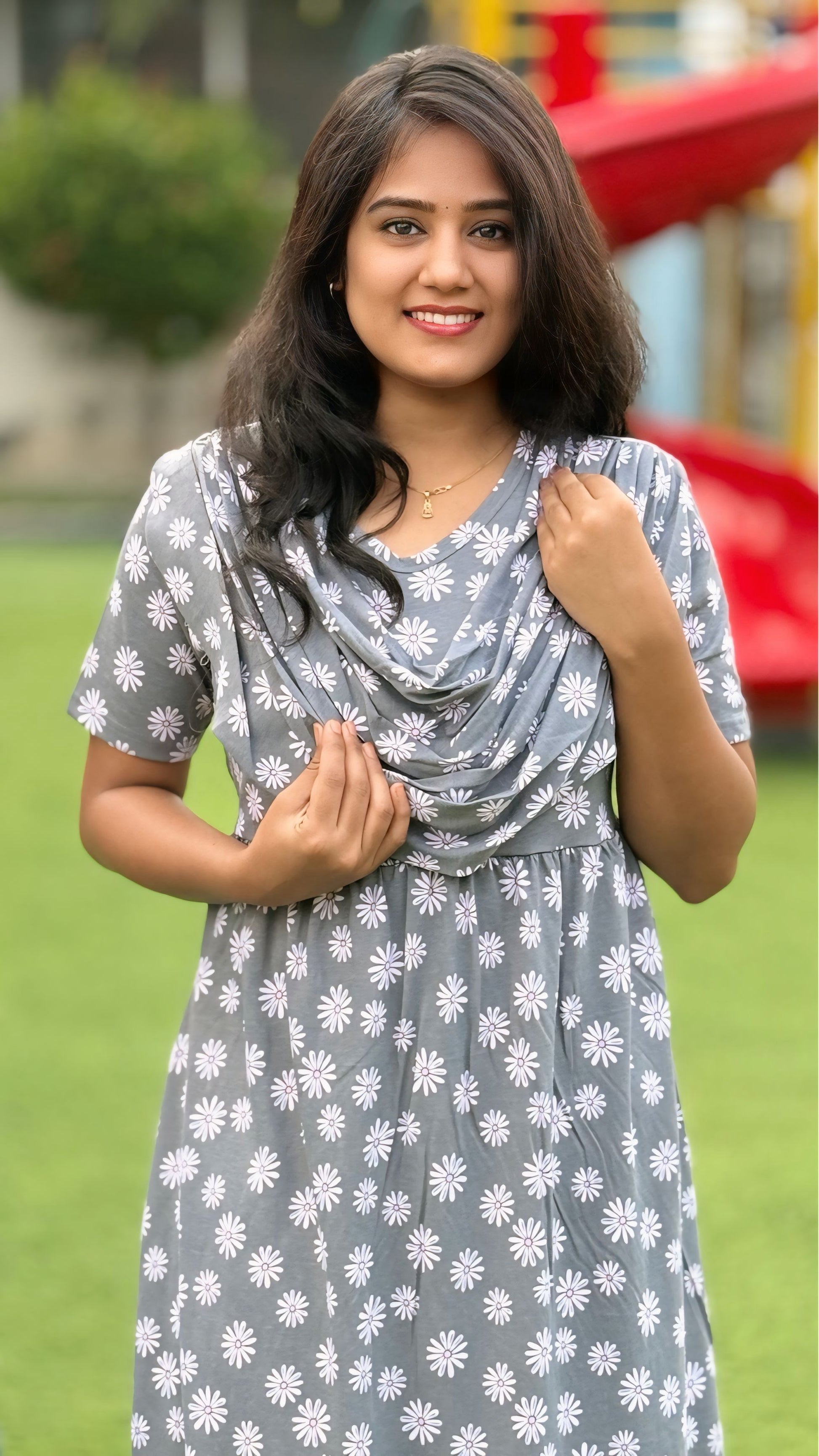 Advantages : Introducing the NON MATERNITY SHAWL - the perfect alternative for stylish maxi wear. With an attached shawl, this nighty offers both comfort and fashion, making it a versatile addition to your wardrobe. Say goodbye to traditional nighties and hello to a chic and practical option.