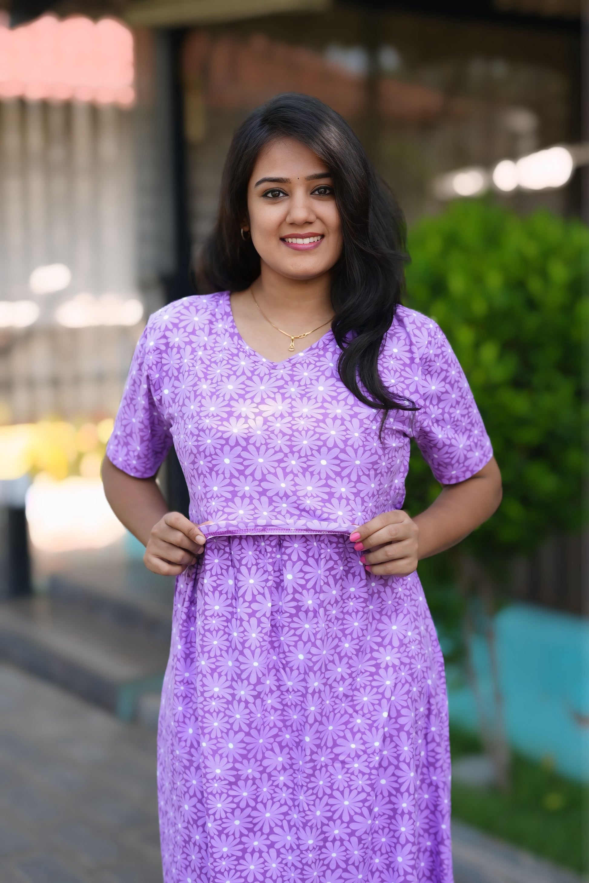 From a product expert: "This pure cotton fine material wear features back ties to easily adjust your baby bump size. Enjoy a comfortable and customizable fit for all-day wear"