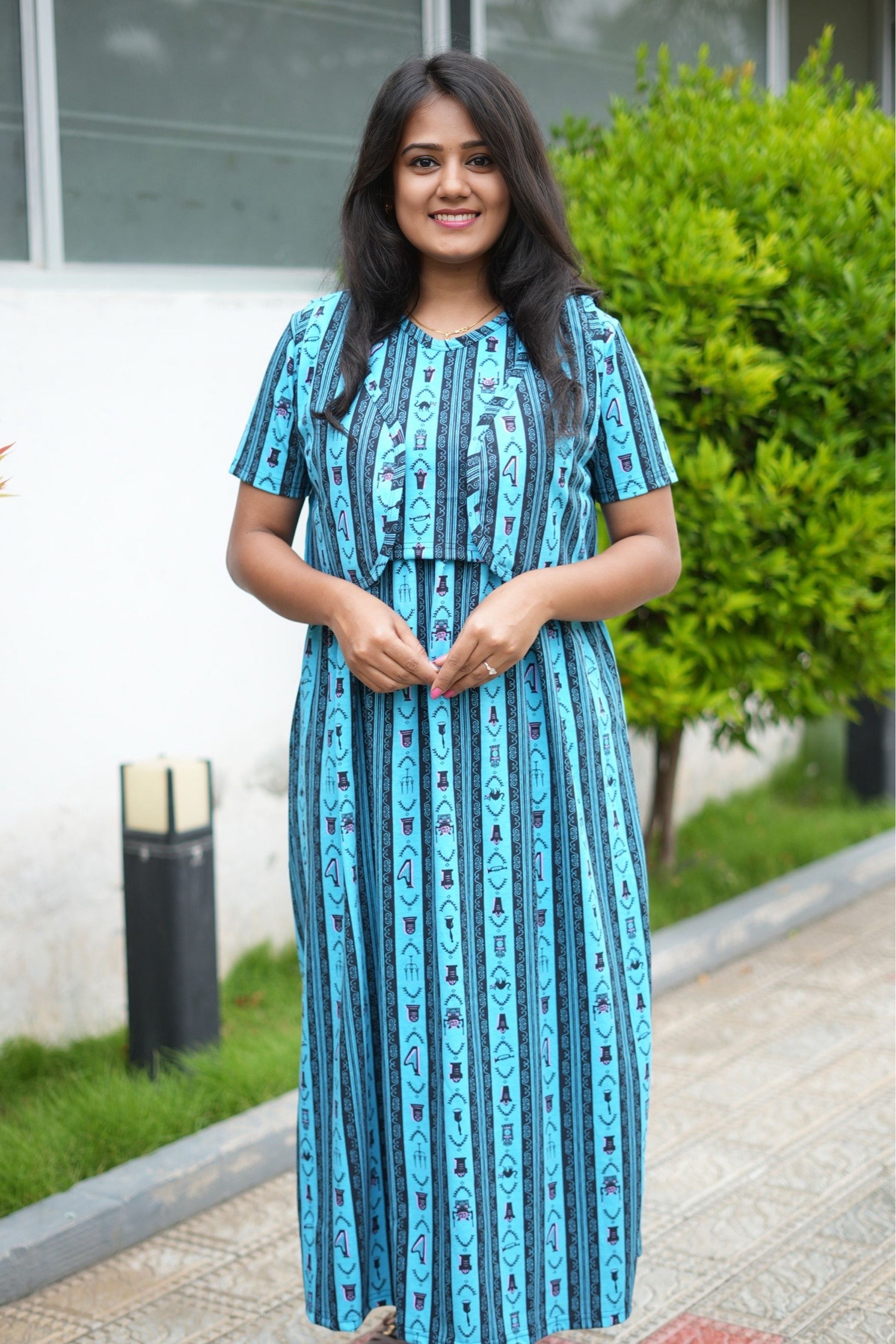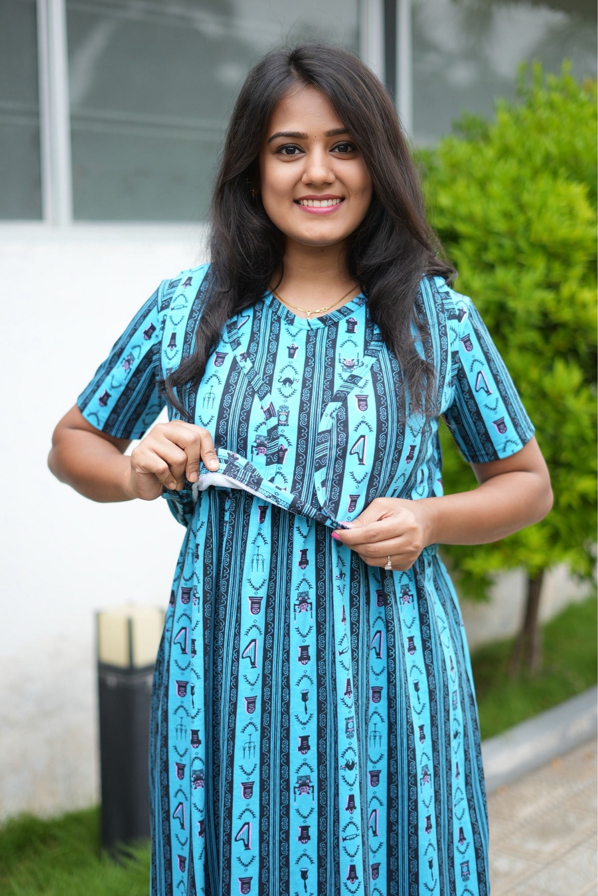 From a product expert: "This pure cotton fine material wear features back ties to easily adjust your baby bump size. Enjoy a comfortable and customizable fit for all-day wear"
