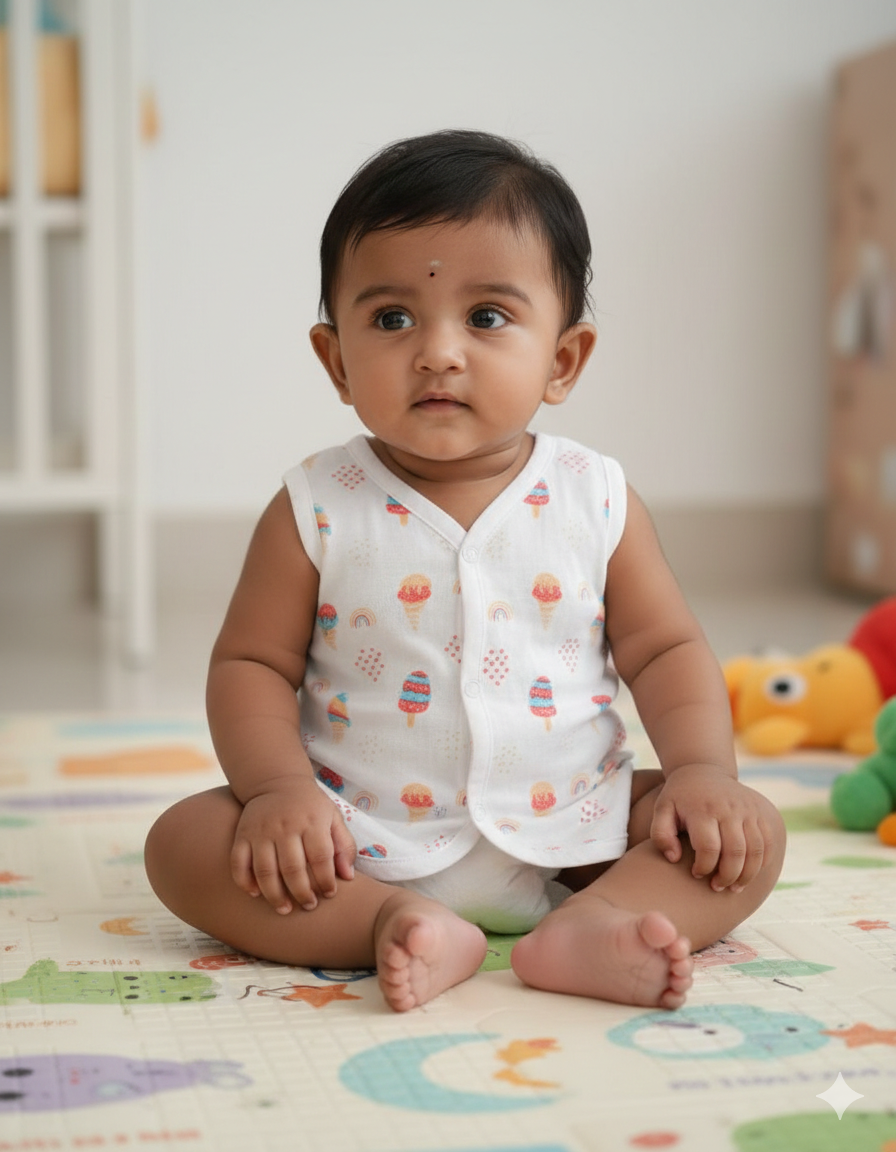 Muslin Snap Button Sleeveless (3 Piece Combo)