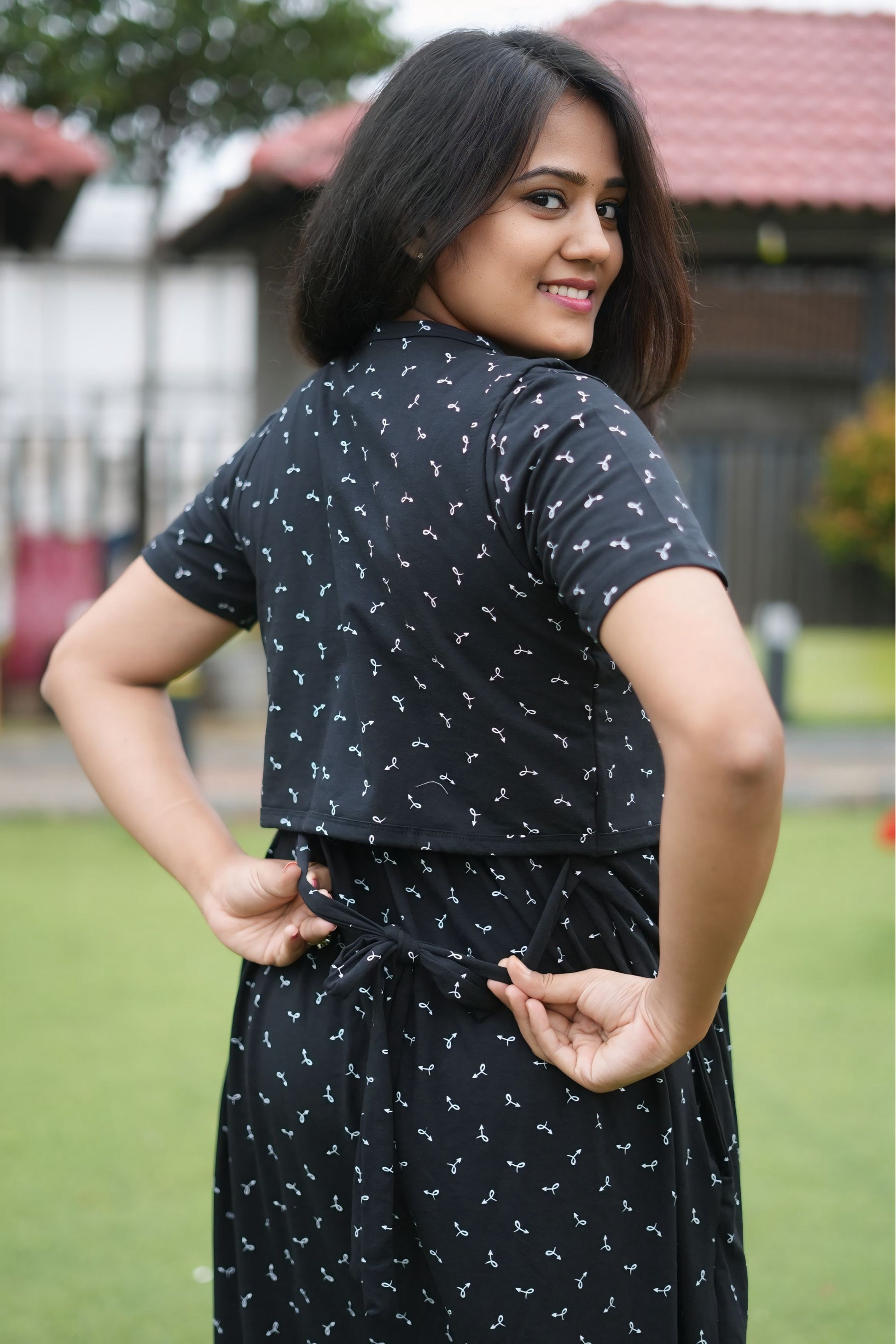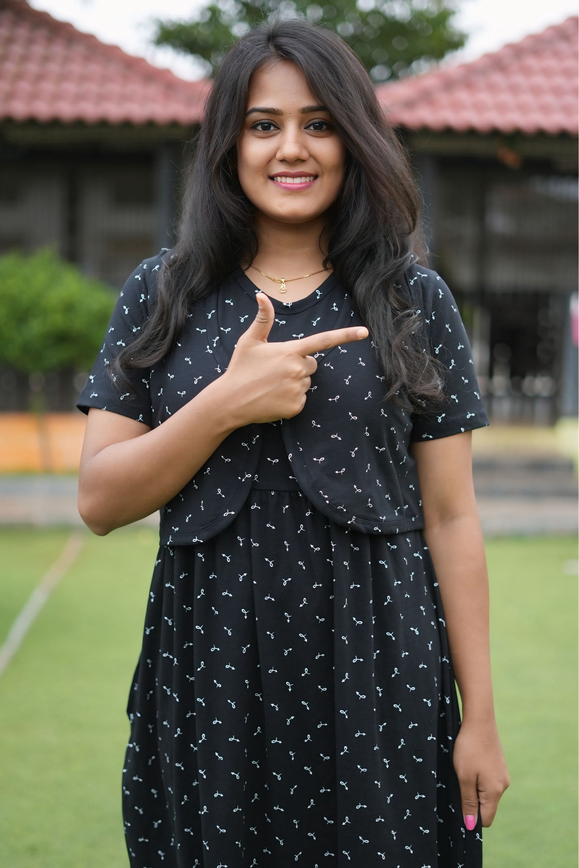 This made of trendy Maxi Cotton Lounge Wear, perfect for wearing as an alternative to a nighty. Stay comfortable and stylish with this versatile and practical piece.