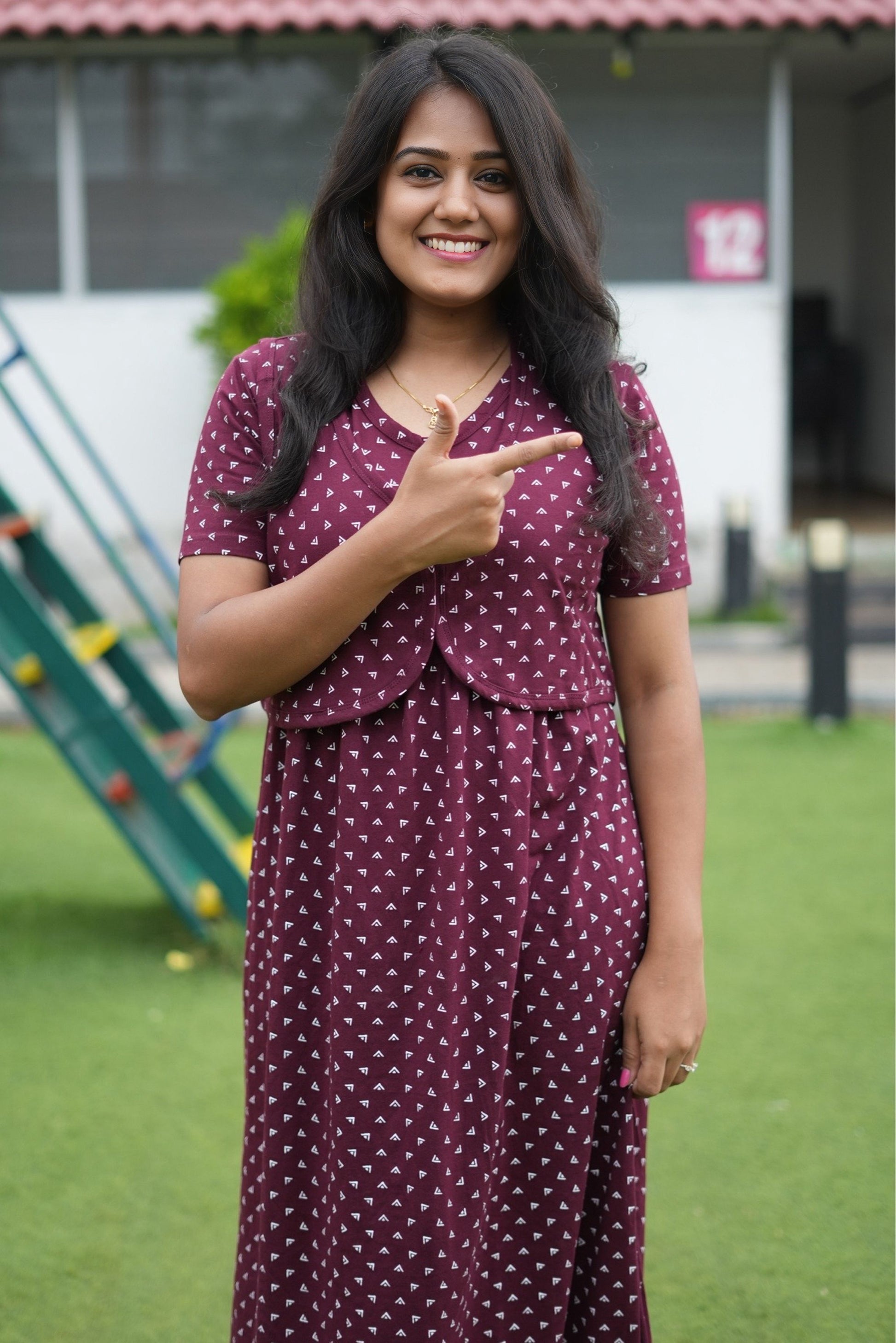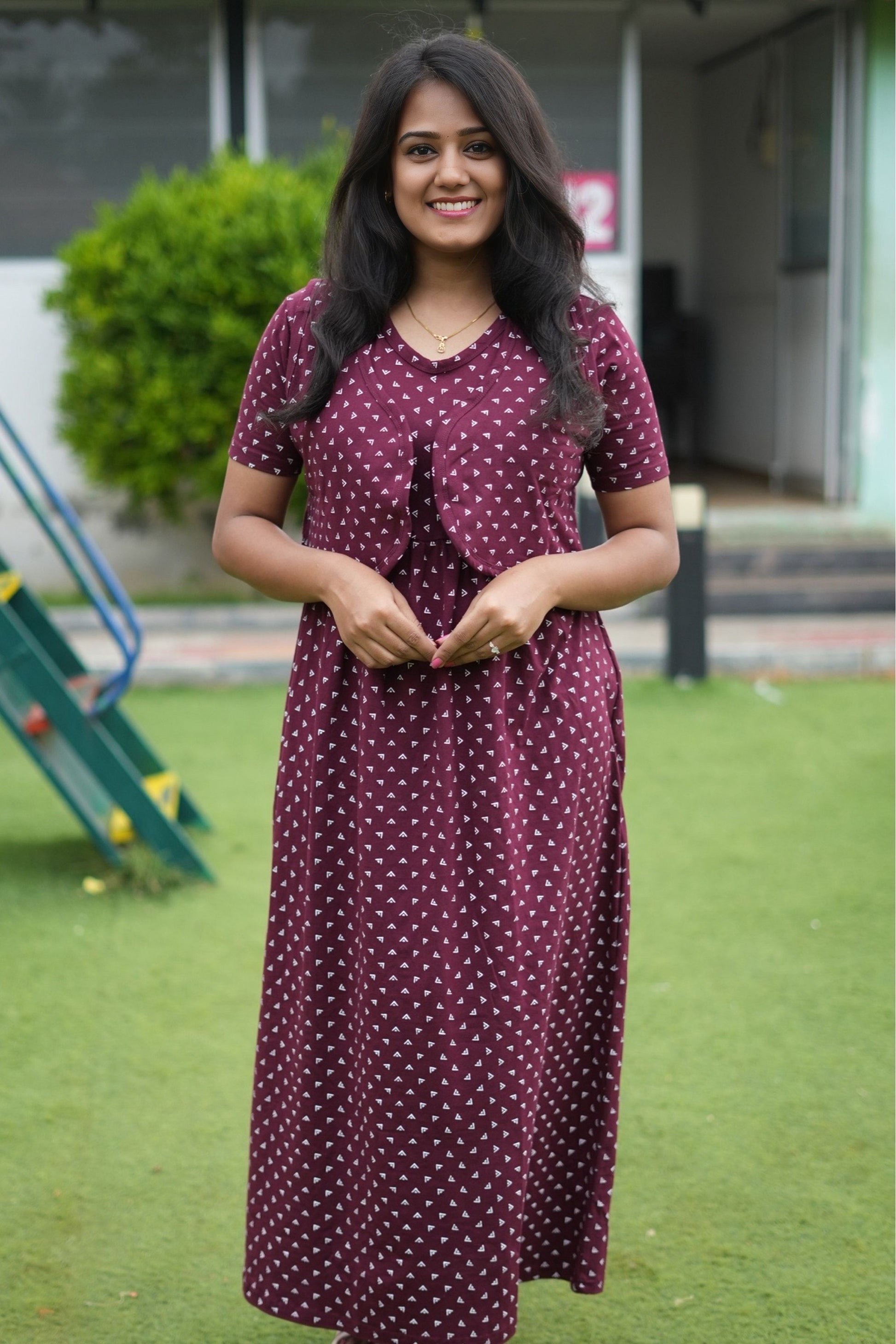 This made of trendy Maxi Cotton Lounge Wear, perfect for wearing as an alternative to a nighty. Stay comfortable and stylish with this versatile and practical piece.
