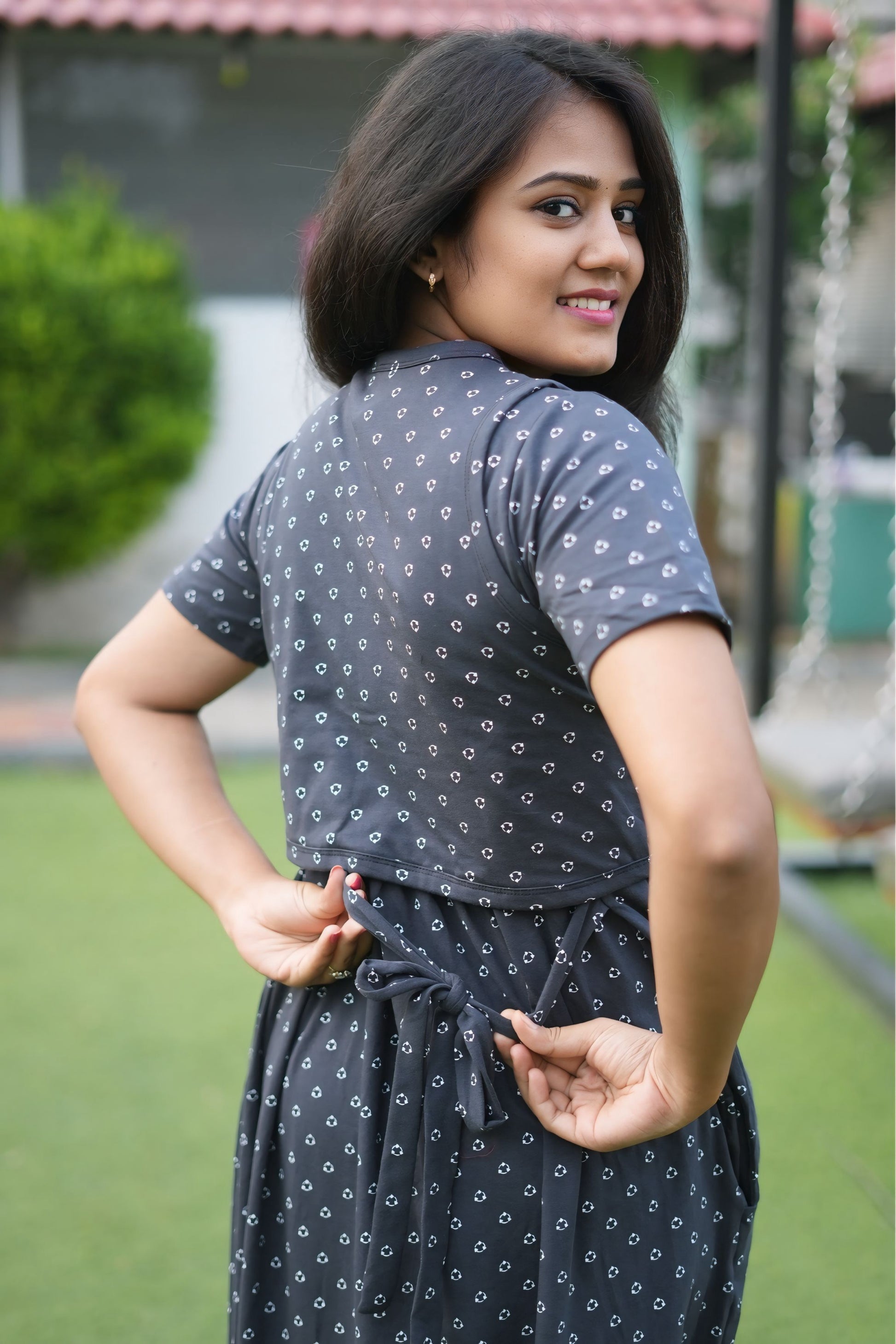This made of trendy Maxi Cotton Lounge Wear, perfect for wearing as an alternative to a nighty. Stay comfortable and stylish with this versatile and practical piece.