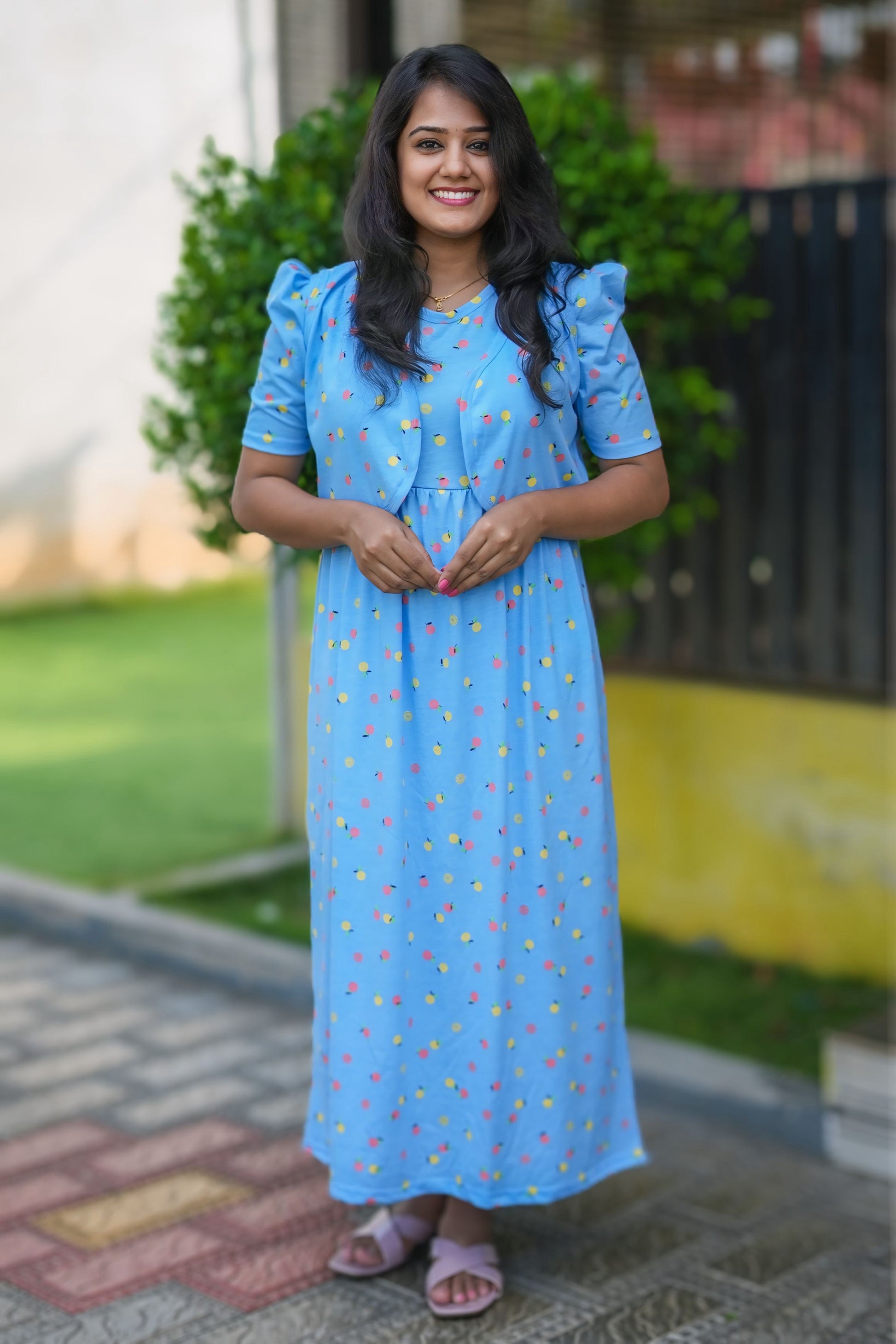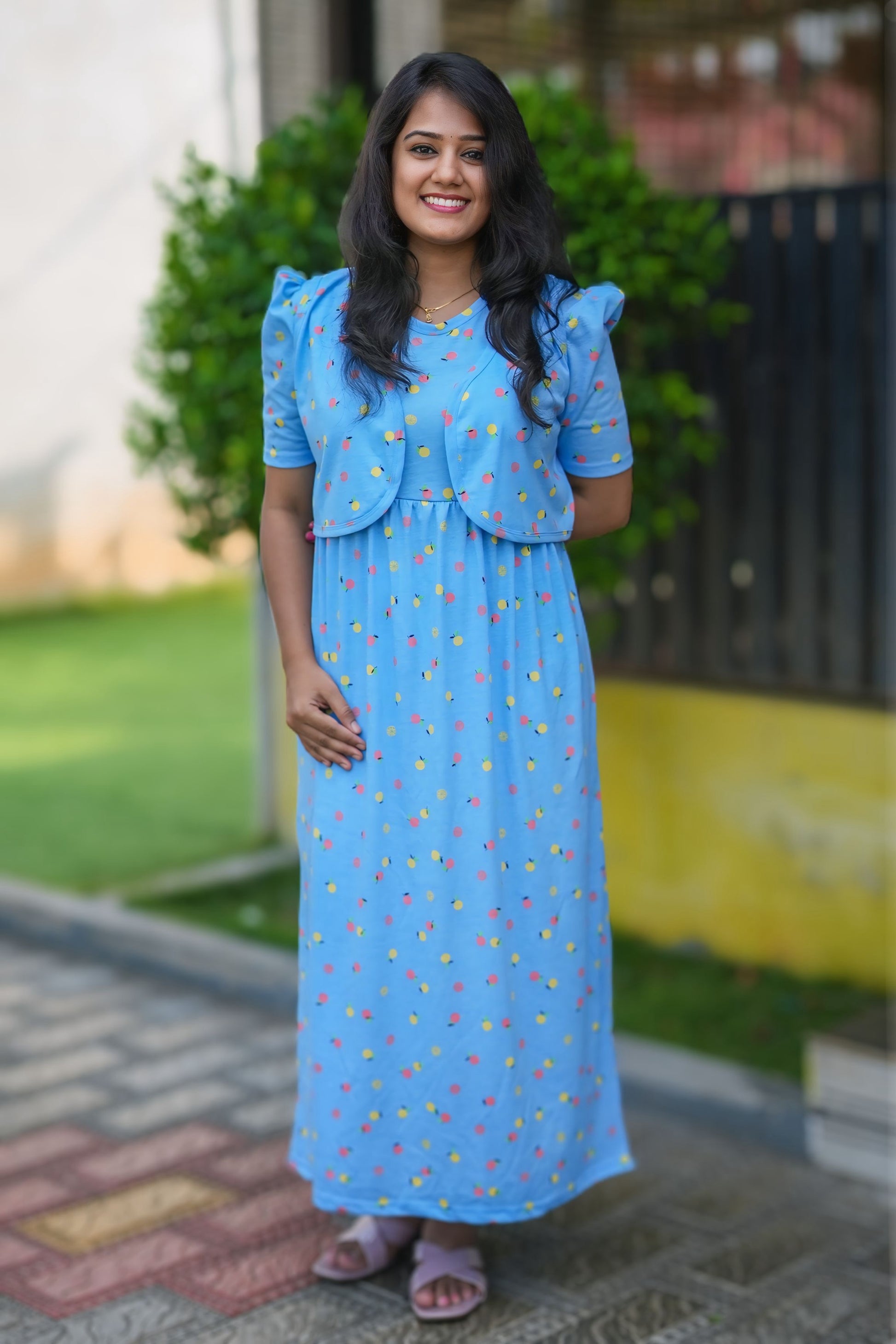 This made of trendy Maxi Cotton Lounge Wear, perfect for wearing as an alternative to a nighty. Stay comfortable and stylish with this versatile and practical piece.