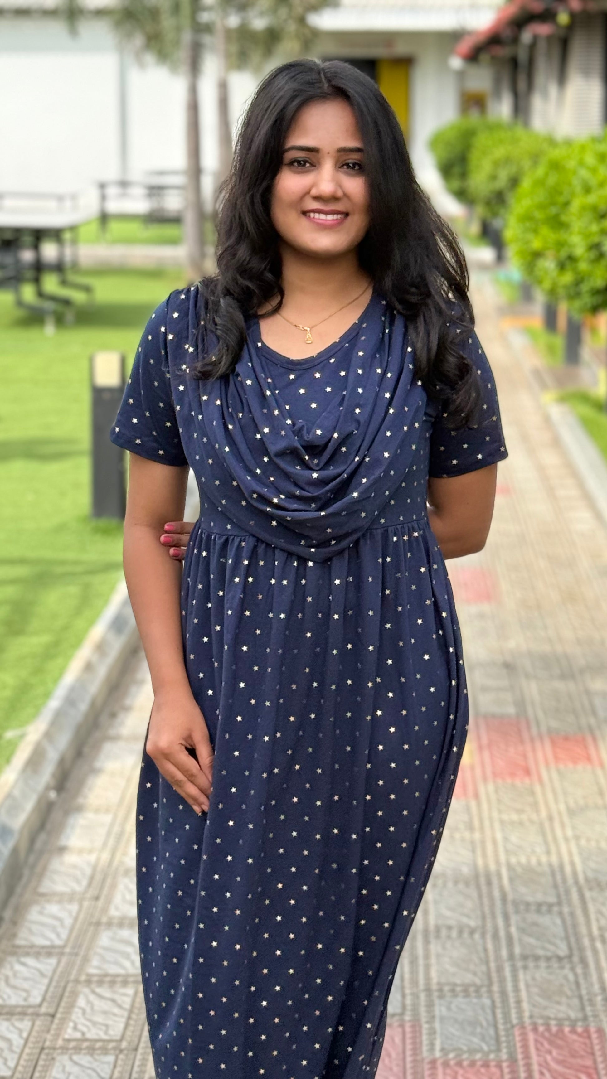 Ā Advantages : Introducing the NON MATERNITY SHAWL - the perfect alternative for stylish maxi wear. With an attached shawl, this nighty offers both comfort and fashion, making it a versatile addition to your wardrobe. Say goodbye to traditional nighties and hello to a chic and practical option.