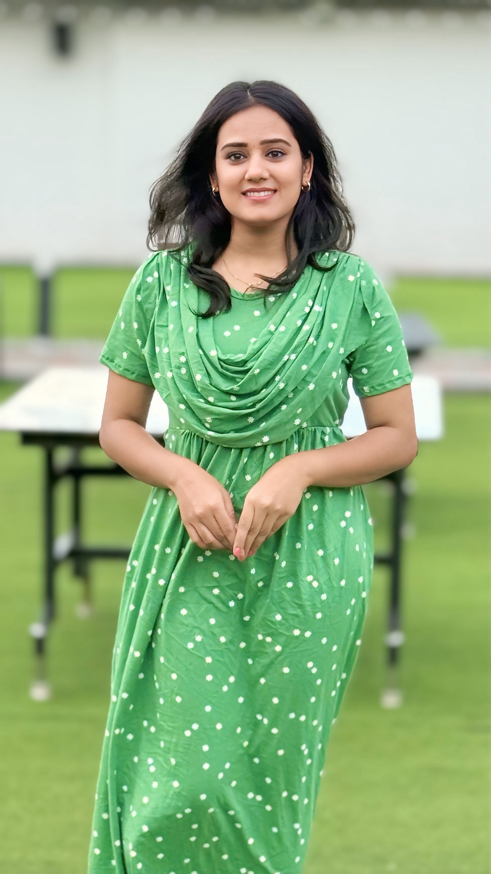 Ā Advantages : Introducing the NON MATERNITY SHAWL - the perfect alternative for stylish maxi wear. With an attached shawl, this nighty offers both comfort and fashion, making it a versatile addition to your wardrobe. Say goodbye to traditional nighties and hello to a chic and practical option.
