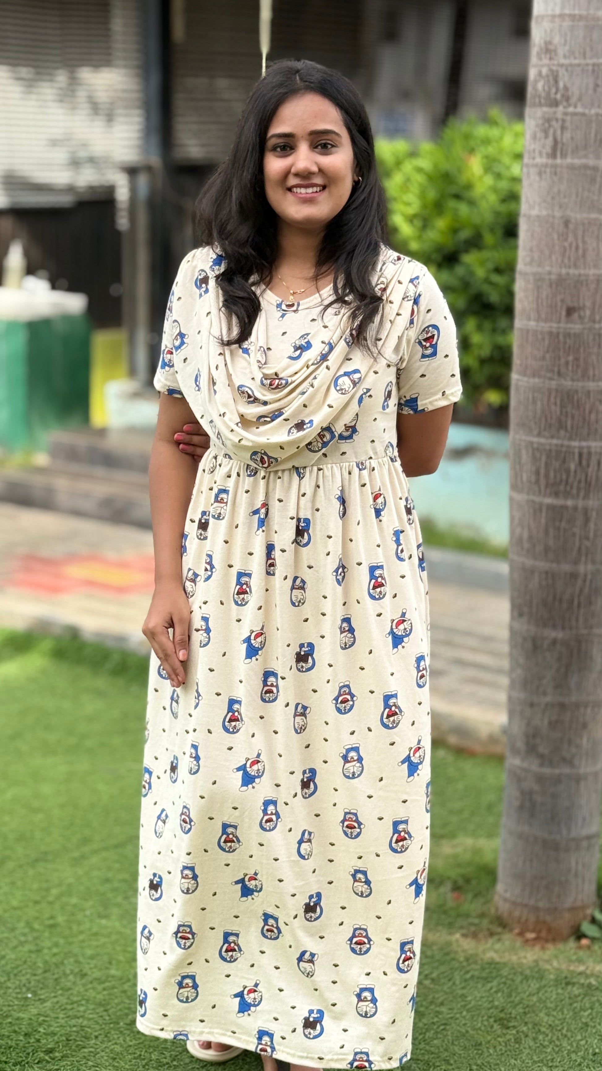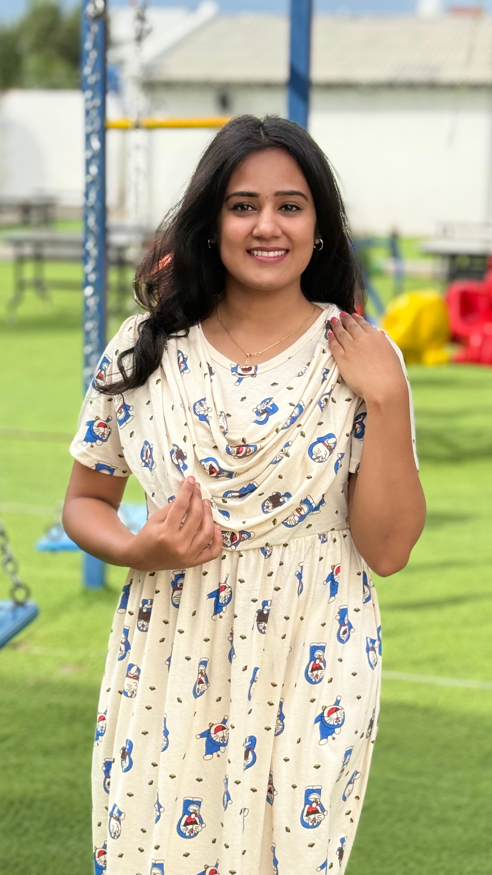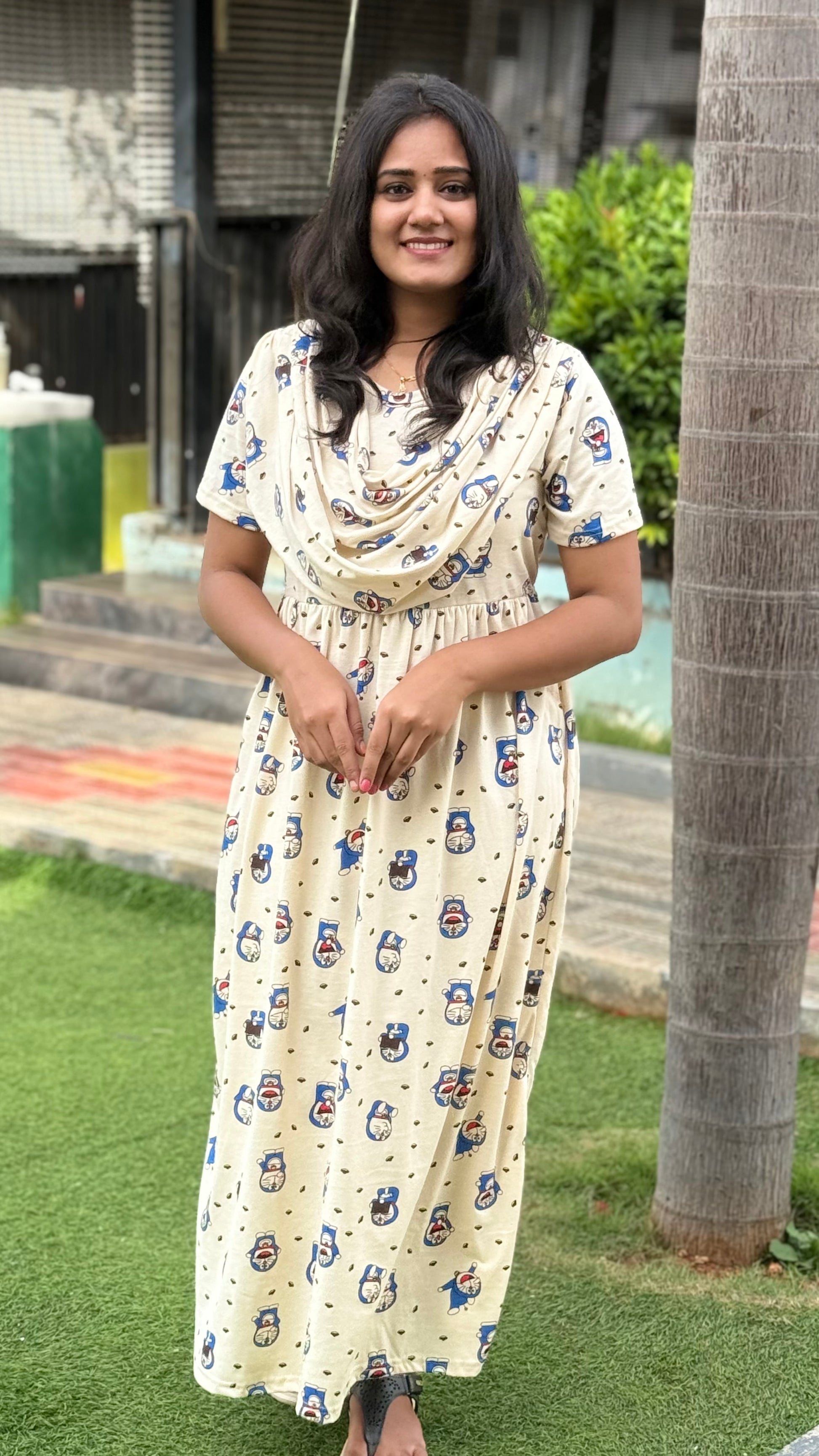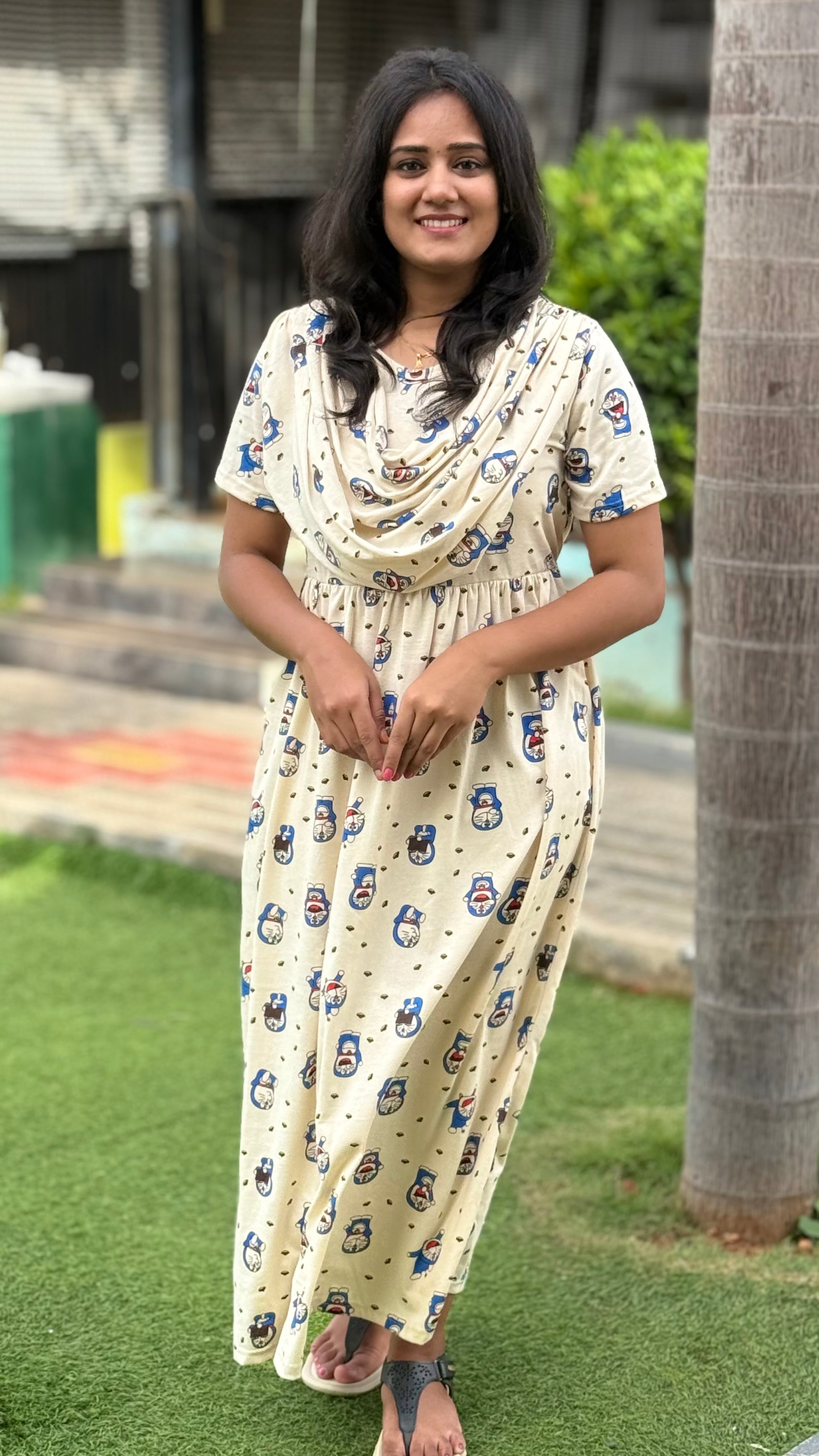 Advantages : Introducing the NON MATERNITY SHAWL - the perfect alternative for stylish maxi wear. With an attached shawl, this nighty offers both comfort and fashion, making it a versatile addition to your wardrobe. Say goodbye to traditional nighties and hello to a chic and practical option.