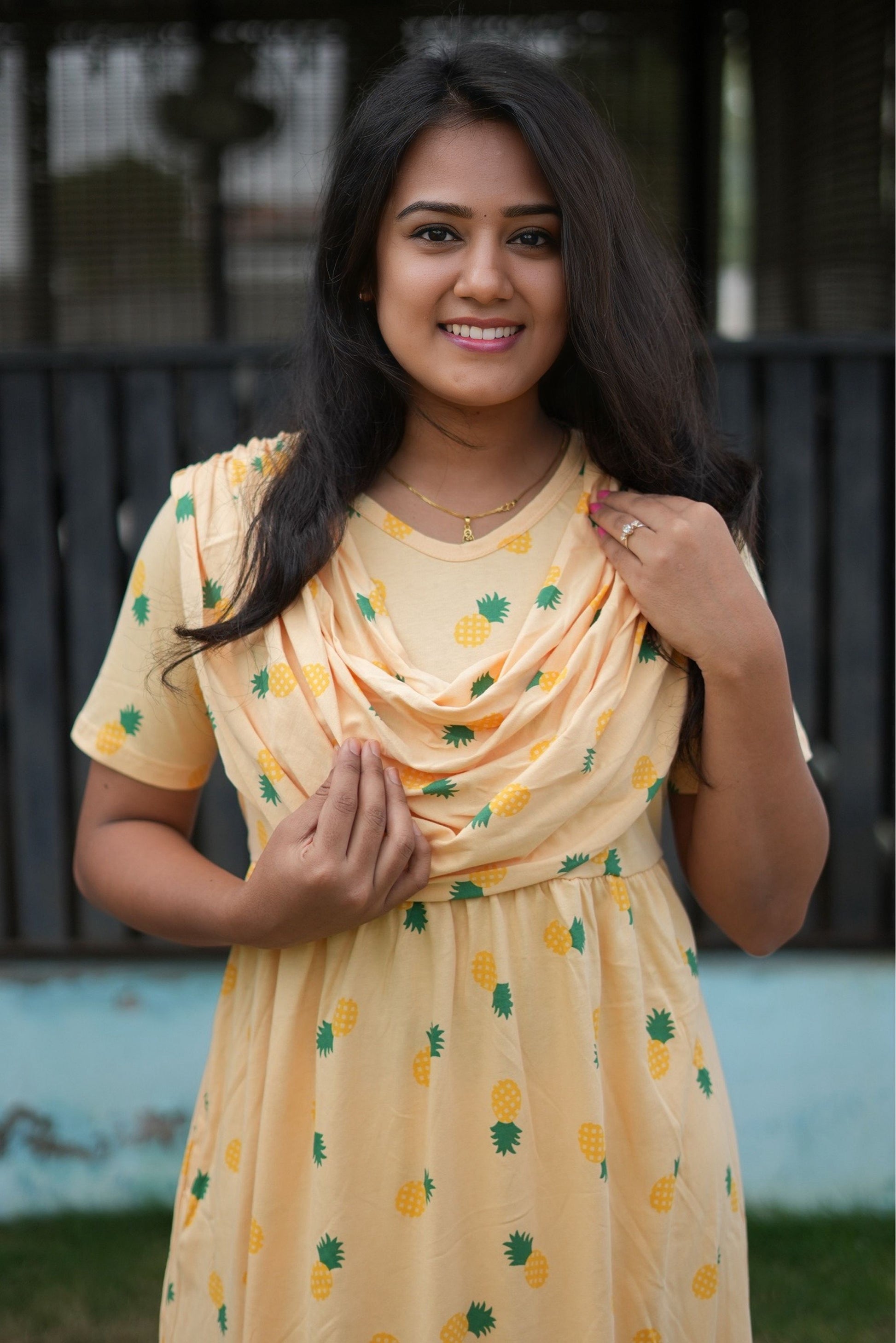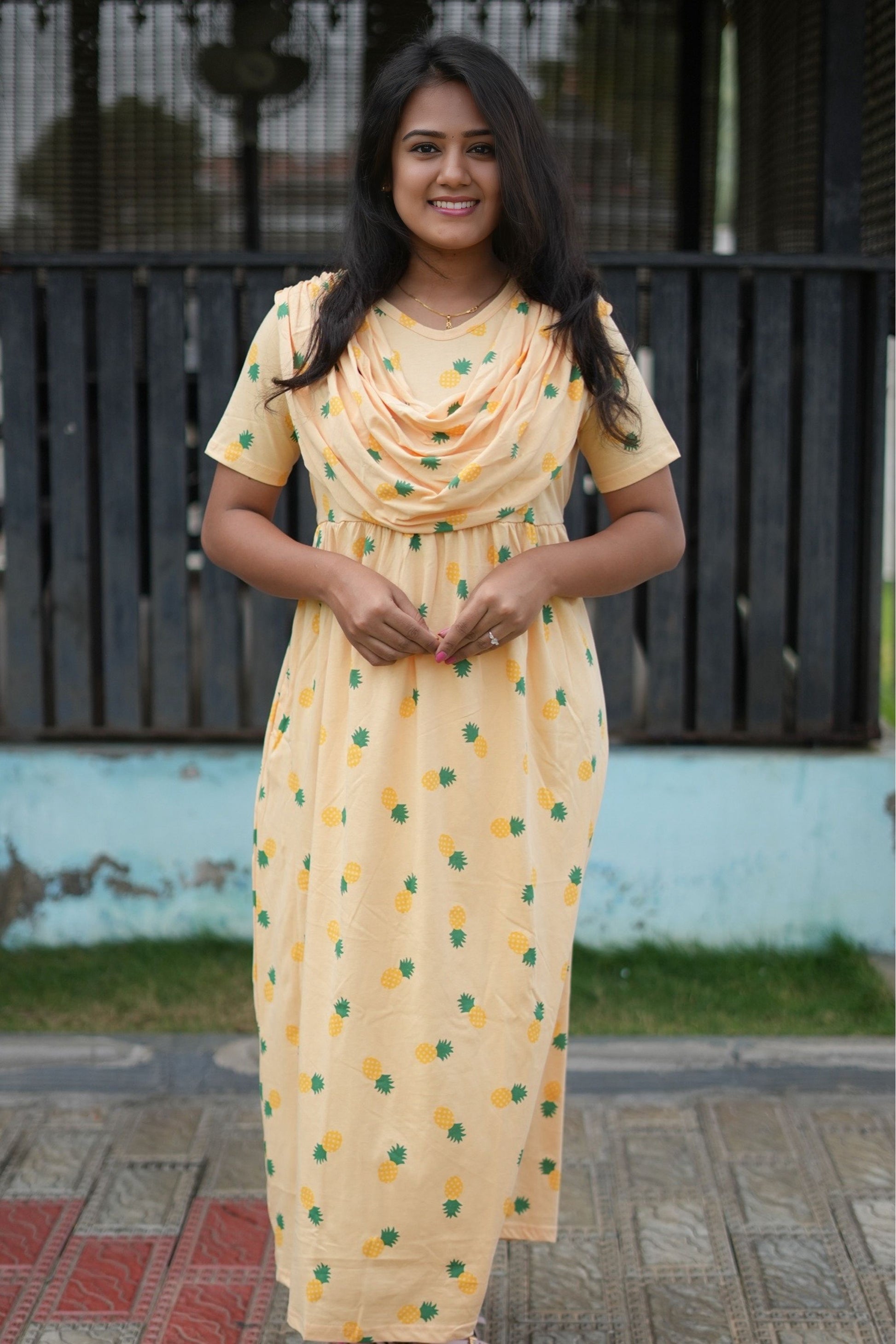 Advantages : Introducing the NON MATERNITY SHAWL - the perfect alternative for stylish maxi wear. With an attached shawl, this nighty offers both comfort and fashion, making it a versatile addition to your wardrobe. Say goodbye to traditional nighties and hello to a chic and practical option.