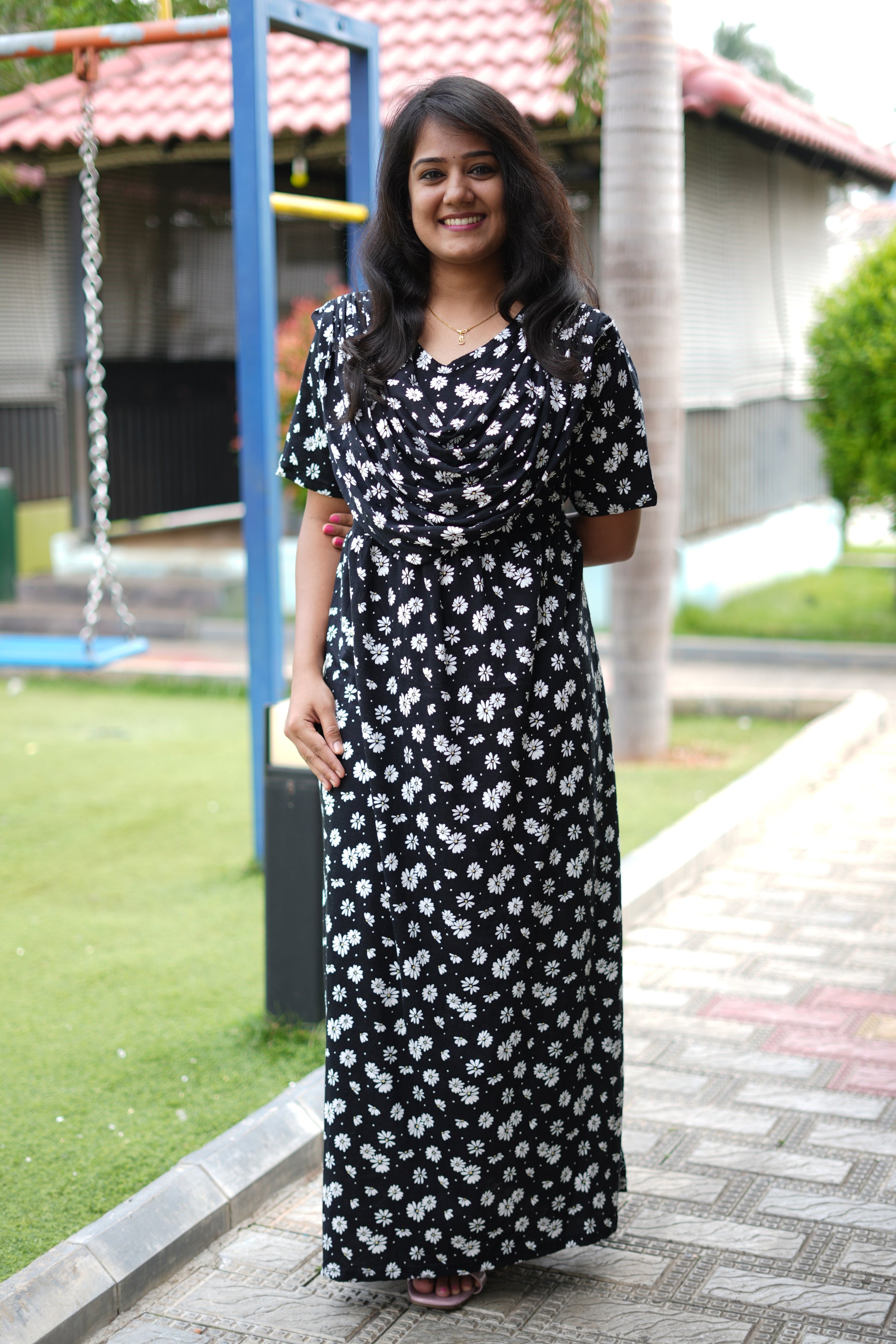 Advantages : Introducing the NON MATERNITY SHAWL - the perfect alternative for stylish maxi wear. With an attached shawl, this nighty offers both comfort and fashion, making it a versatile addition to your wardrobe. Say goodbye to traditional nighties and hello to a chic and practical option.