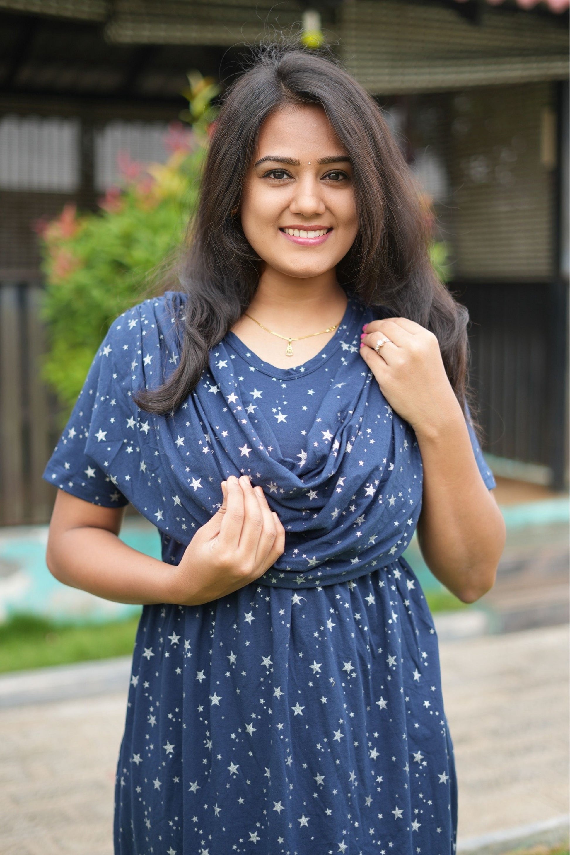 Advantages : Introducing the NON MATERNITY SHAWL - the perfect alternative for stylish maxi wear. With an attached shawl, this nighty offers both comfort and fashion, making it a versatile addition to your wardrobe. Say goodbye to traditional nighties and hello to a chic and practical option.