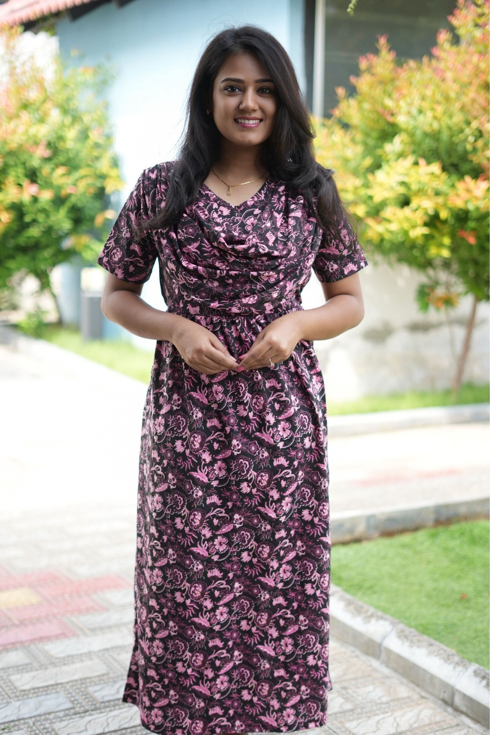 Advantages : Introducing the NON MATERNITY SHAWL - the perfect alternative for stylish maxi wear. With an attached shawl, this nighty offers both comfort and fashion, making it a versatile addition to your wardrobe. Say goodbye to traditional nighties and hello to a chic and practical option.