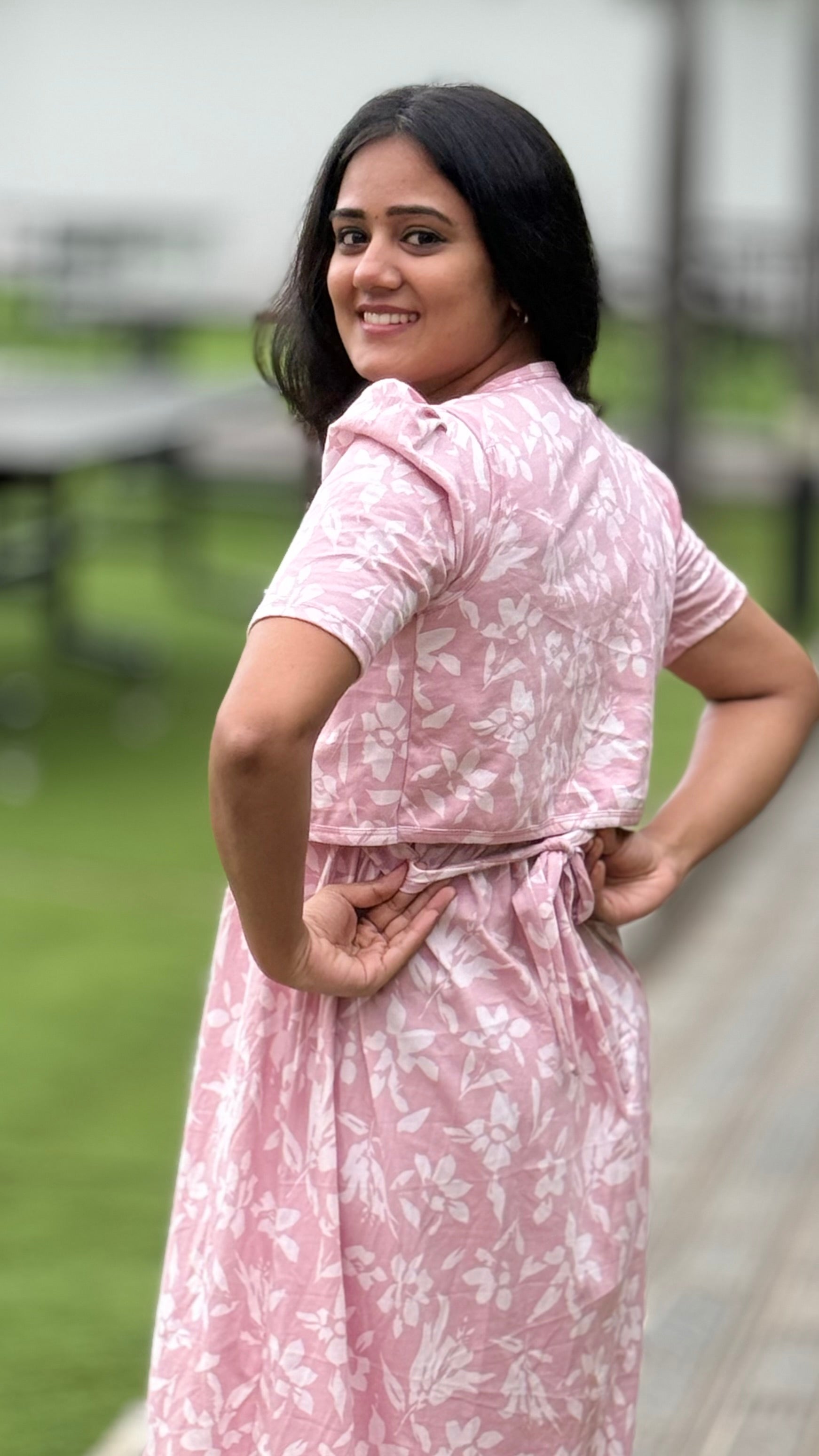 This made of trendy Maxi Cotton Lounge Wear, perfect for wearing as an alternative to a nighty. Stay comfortable and stylish with this versatile and practical piece.
