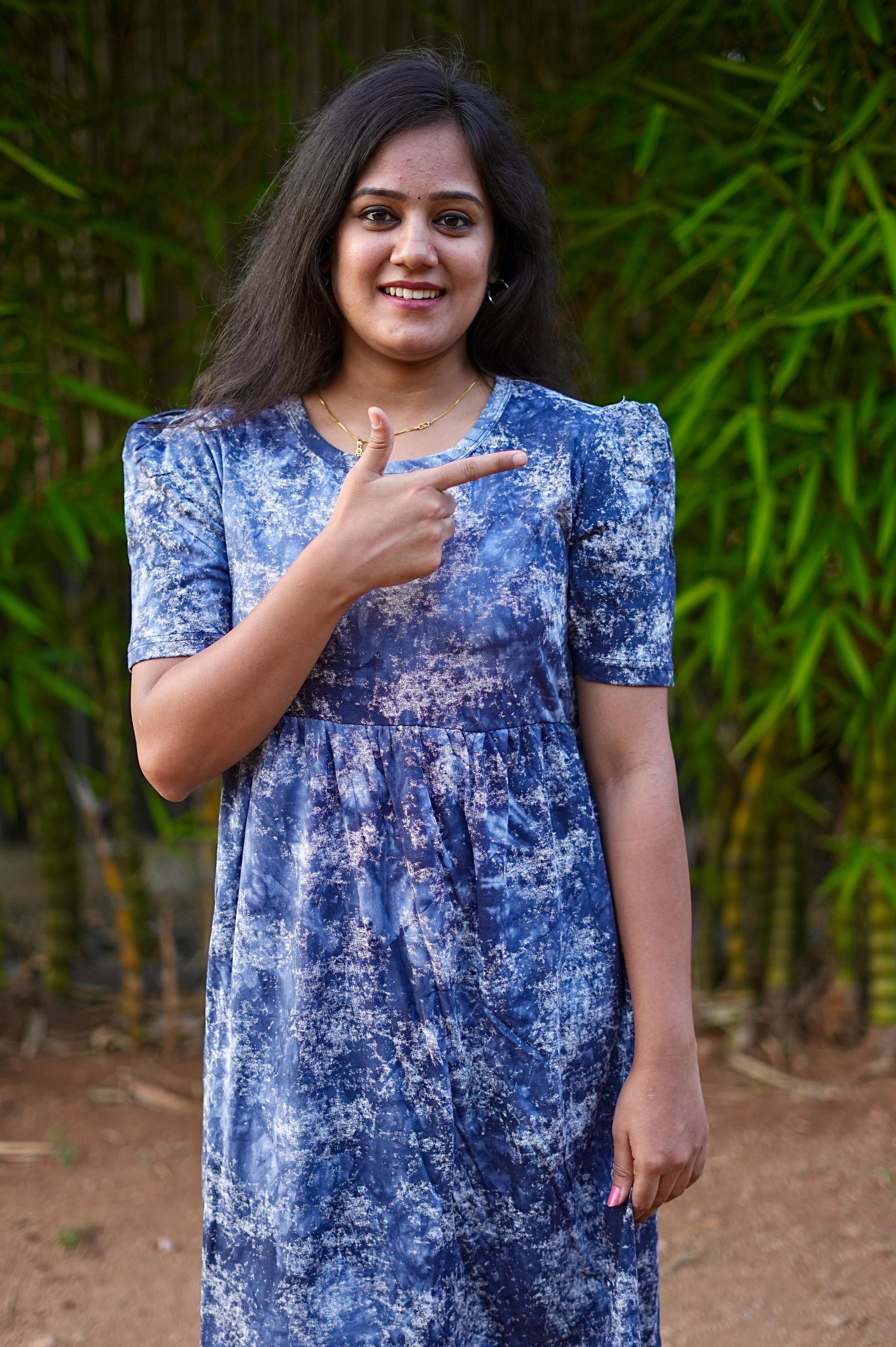 PUFF TYPE MAXI COTTON LOUNGE WEAR WITH NAVY PINCH