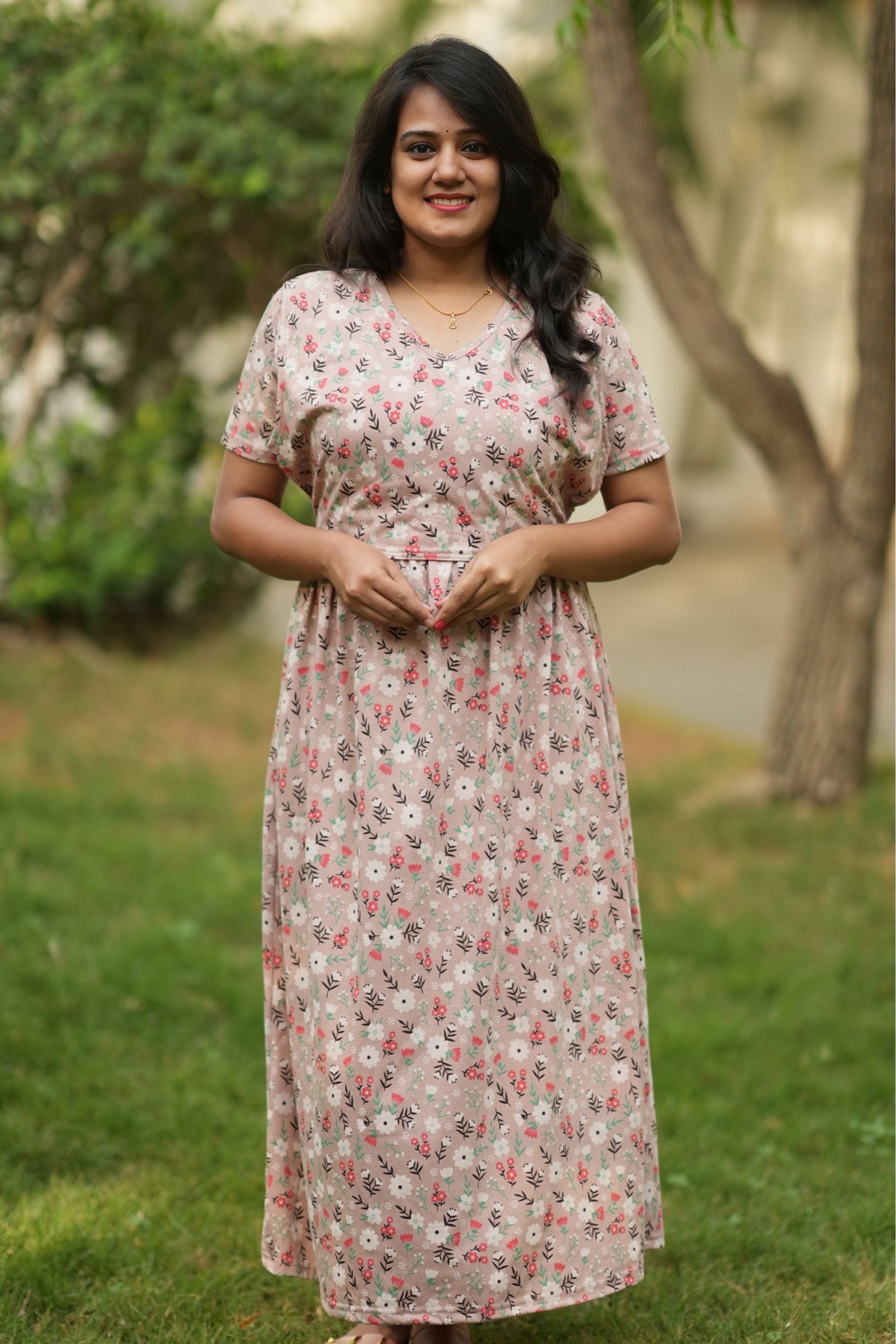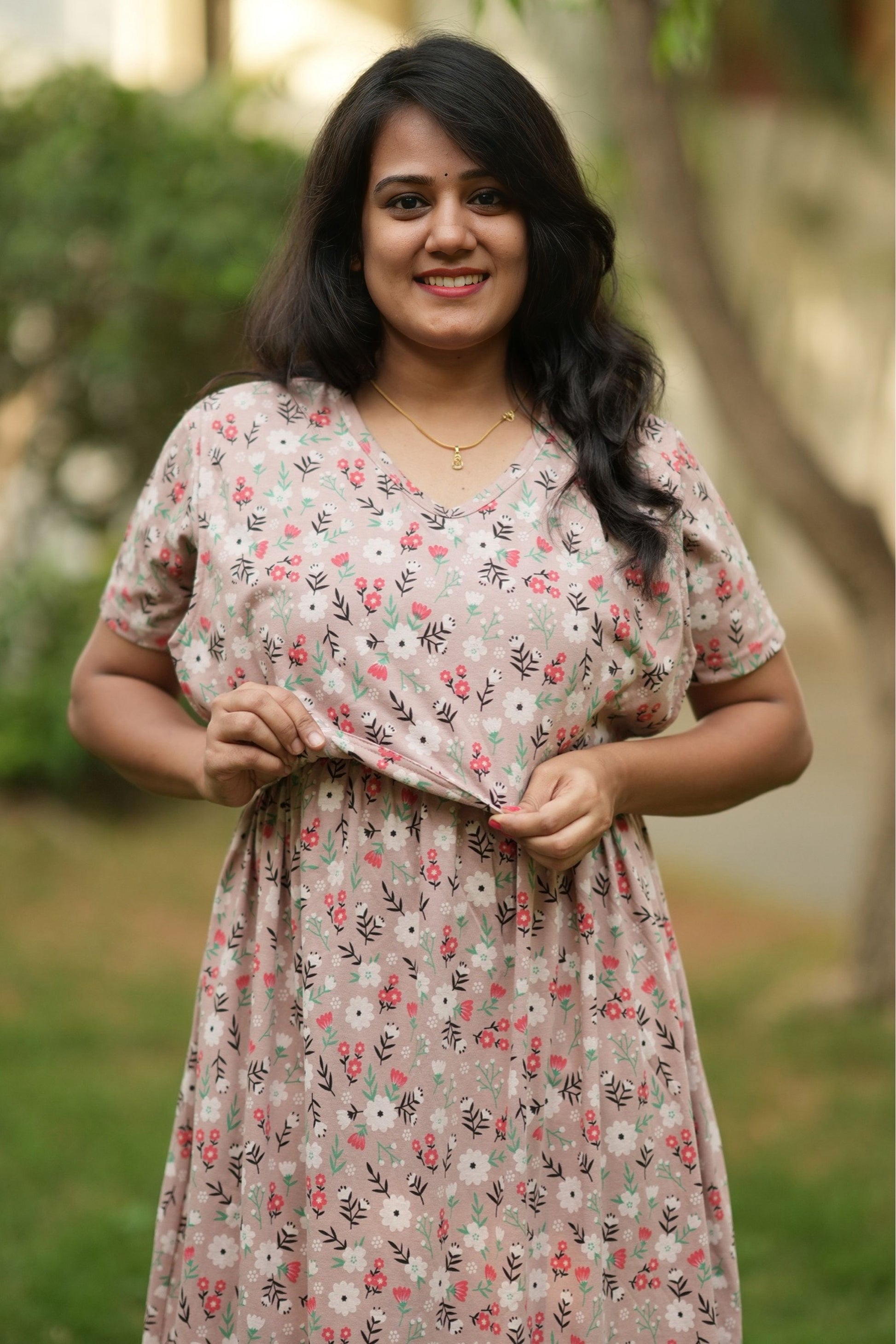 From a product expert: "This pure cotton fine material wear features back ties to easily adjust your baby bump size. Enjoy a comfortable and customizable fit for all-day wear"