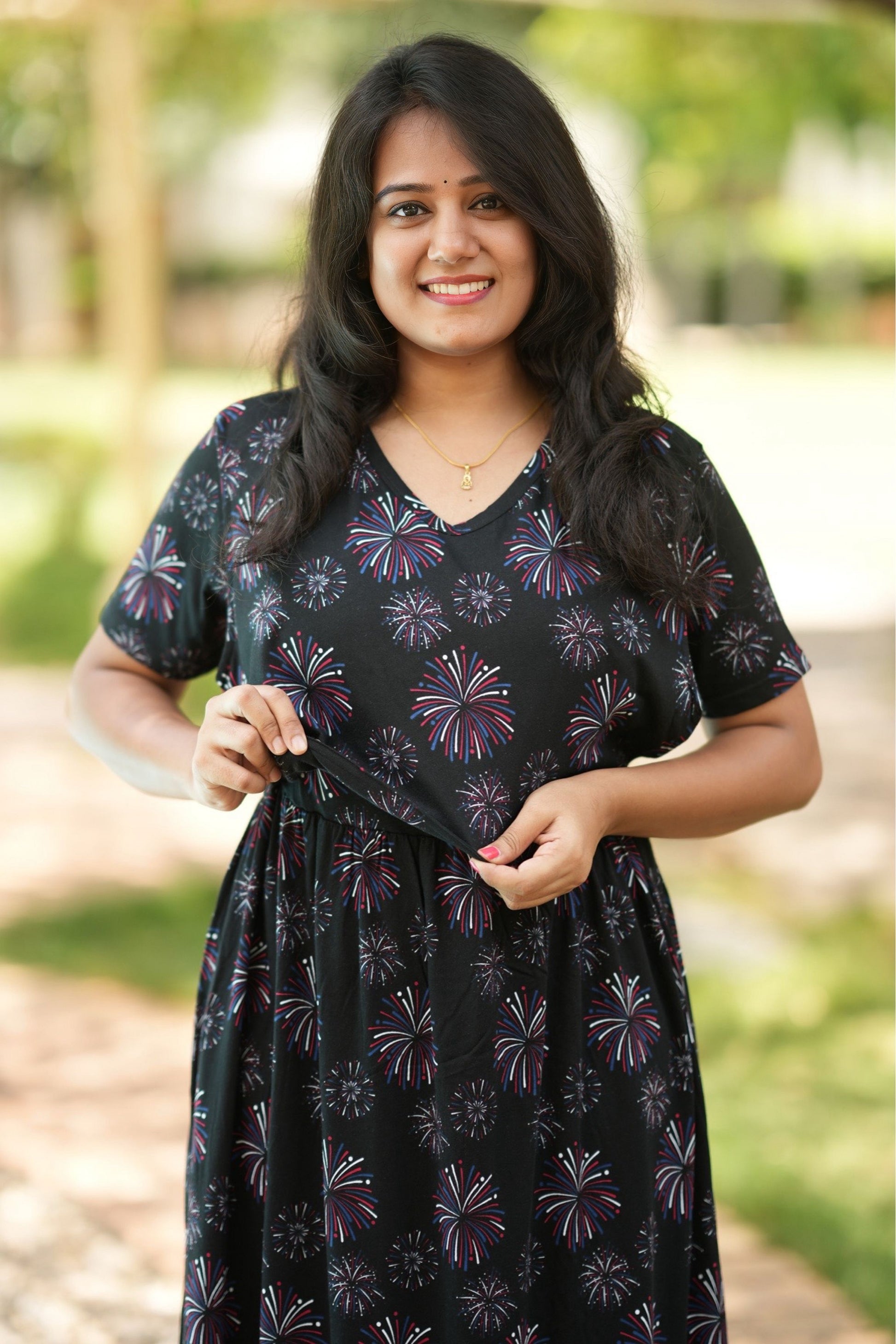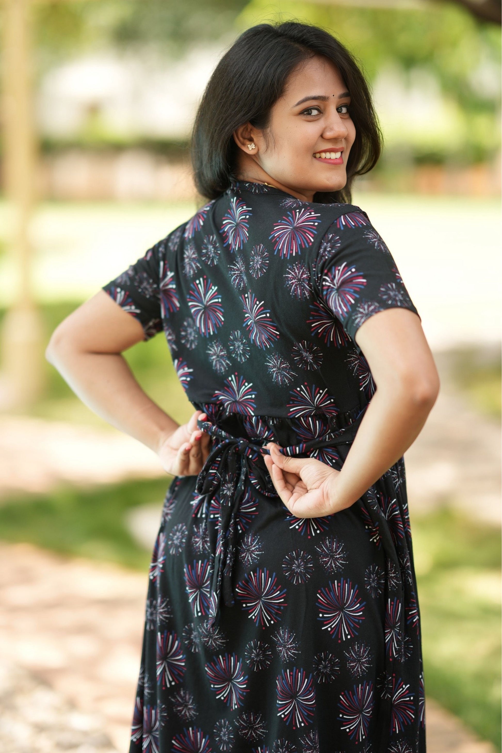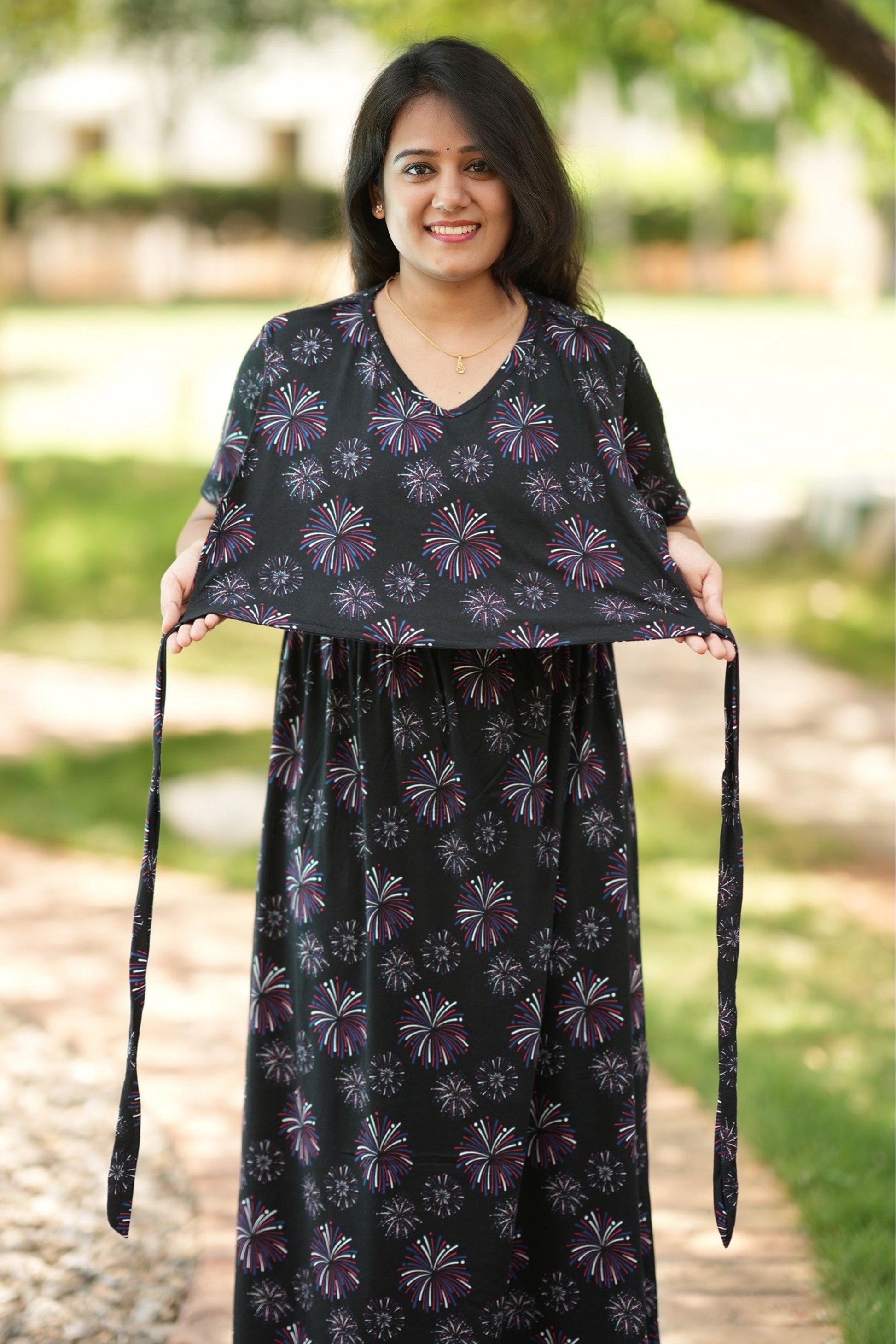 From a product expert: "This pure cotton fine material wear features back ties to easily adjust your baby bump size. Enjoy a comfortable and customizable fit for all-day wear"