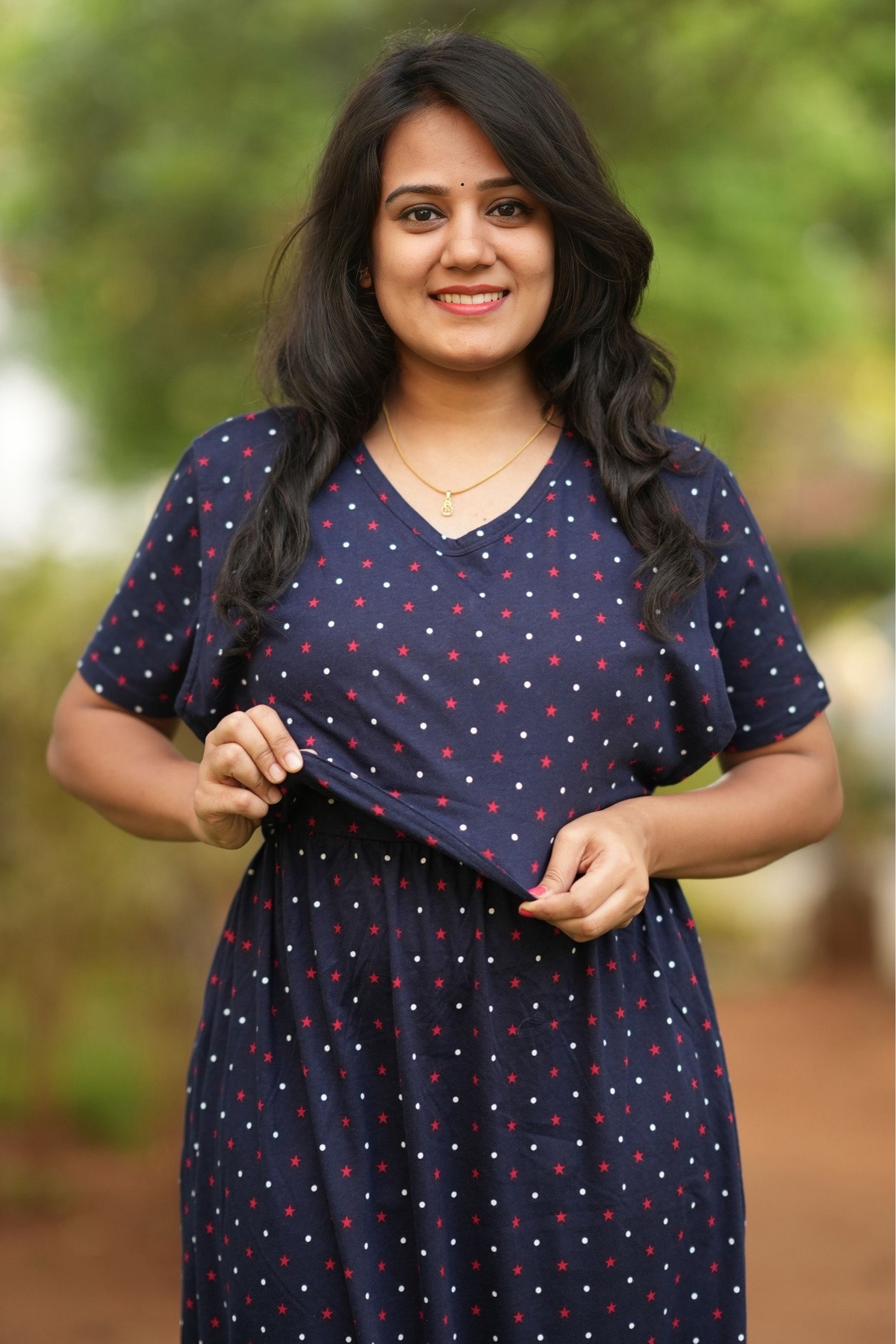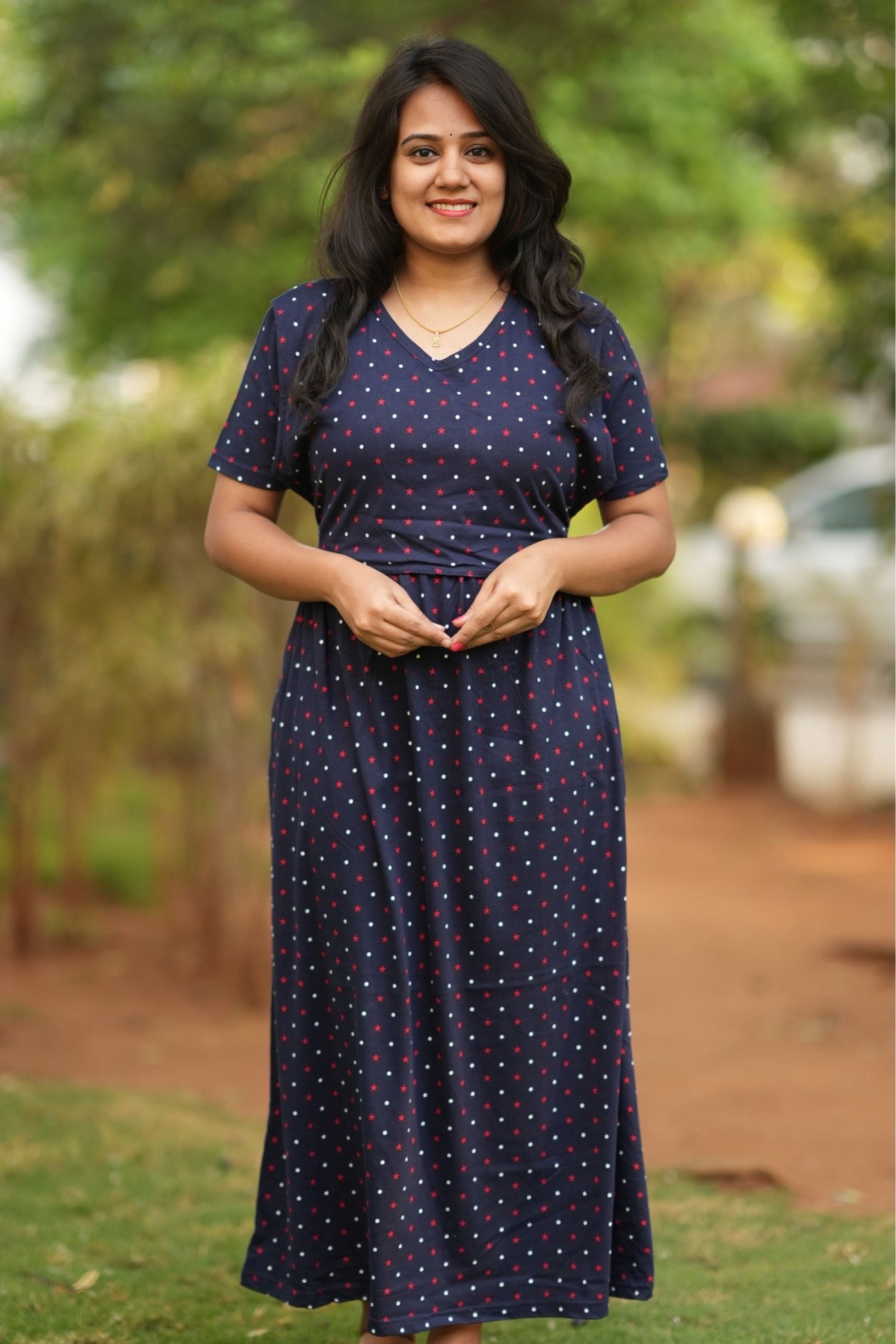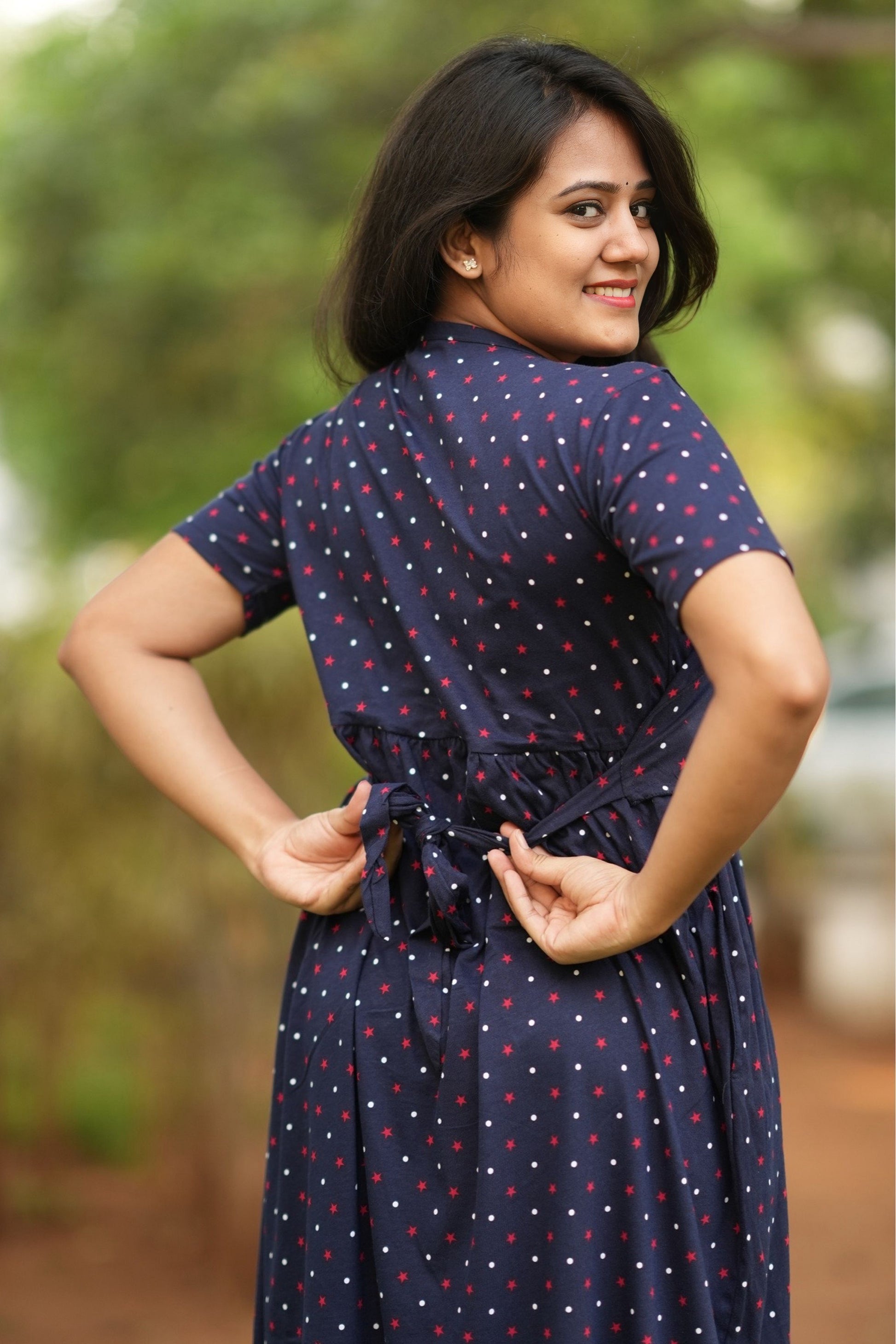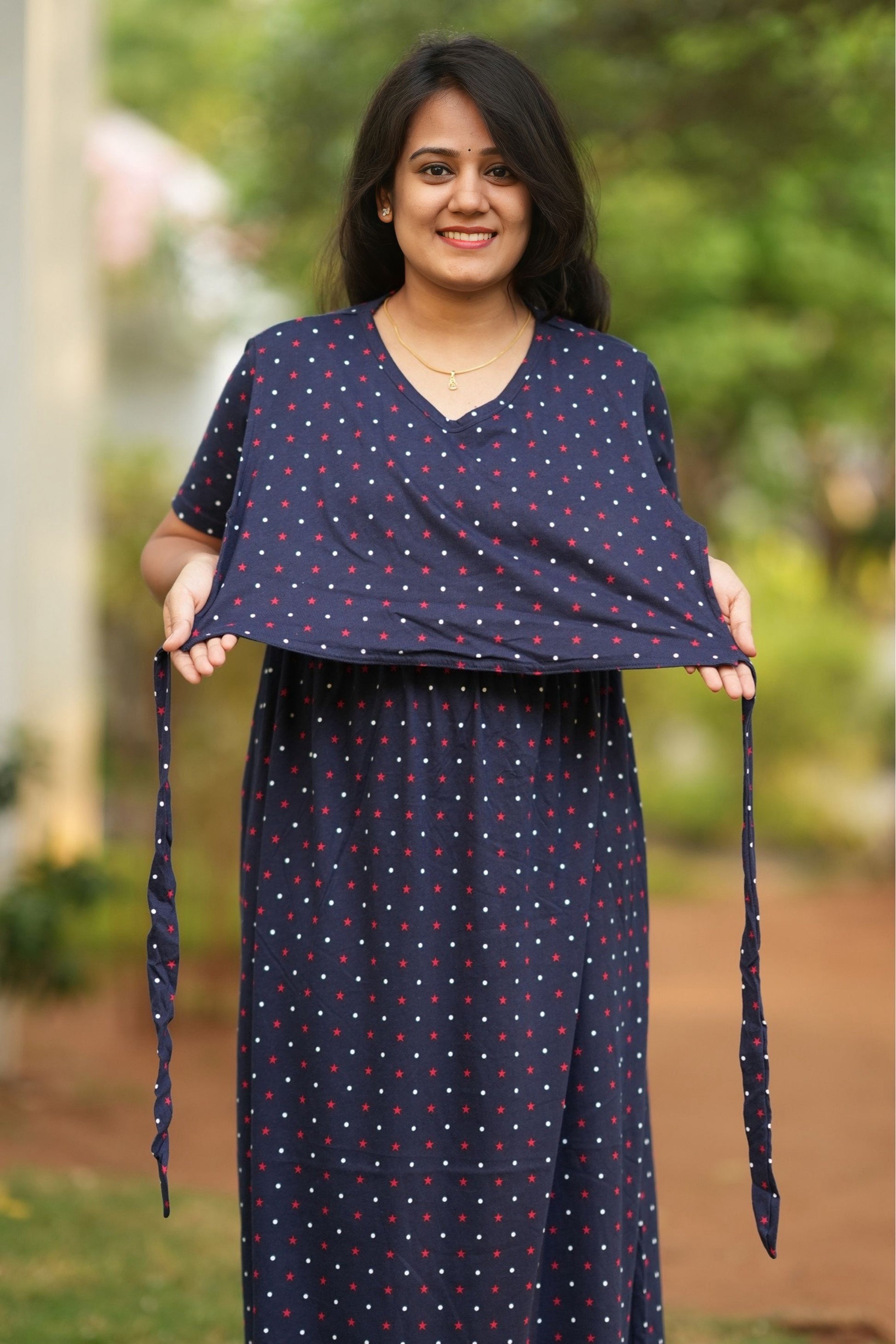 From a product expert: "This pure cotton fine material wear features back ties to easily adjust your baby bump size. Enjoy a comfortable and customizable fit for all-day wear"