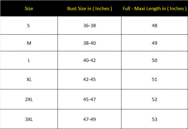 Size | Bust Size in ( Inches ) | Full - Maxi Length in ( Inches ) |