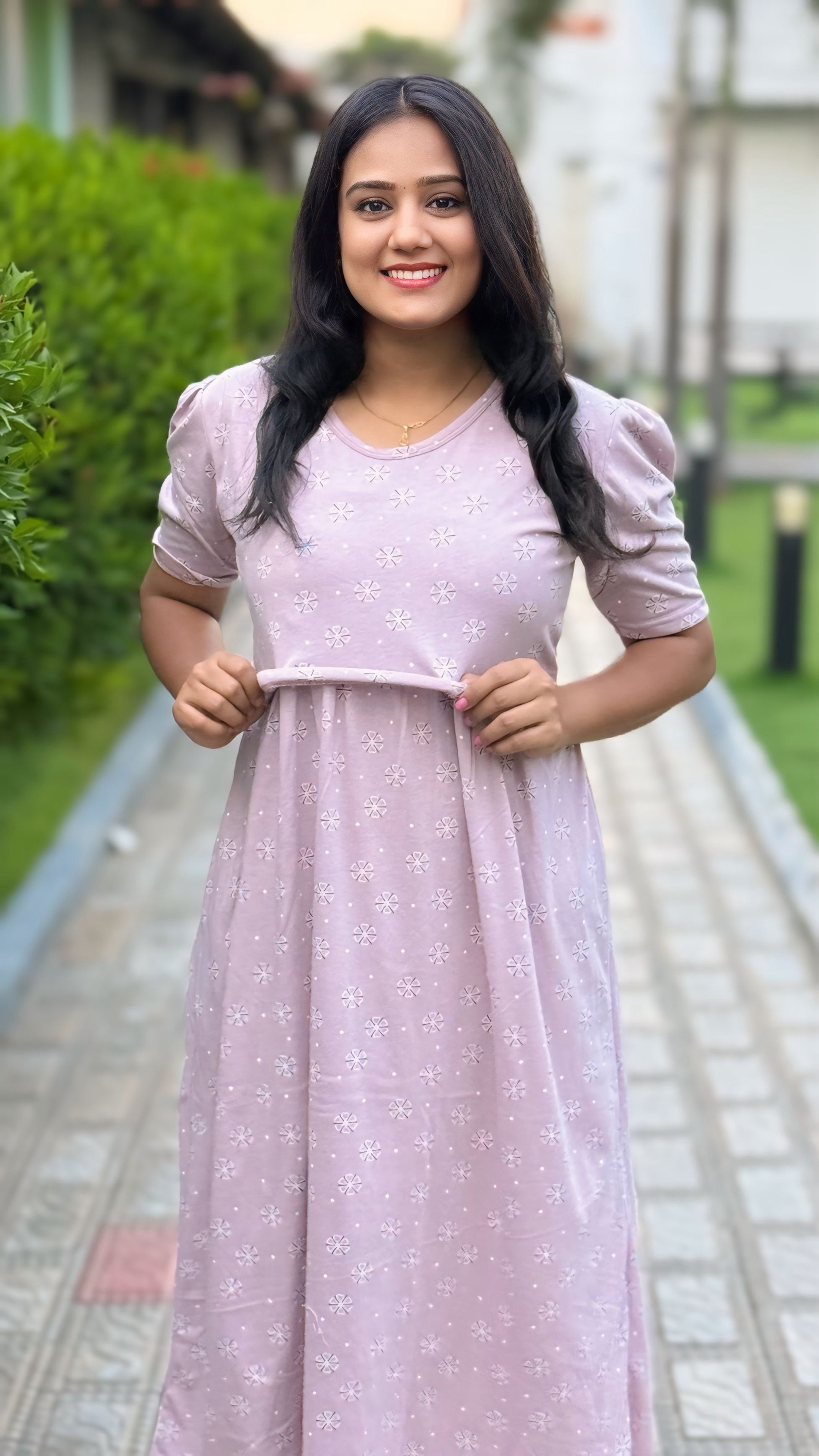 From a product expert: "This pure cotton fine material wear features back ties to easily adjust your baby bump size. Enjoy a comfortable and customizable fit for all-day wear"